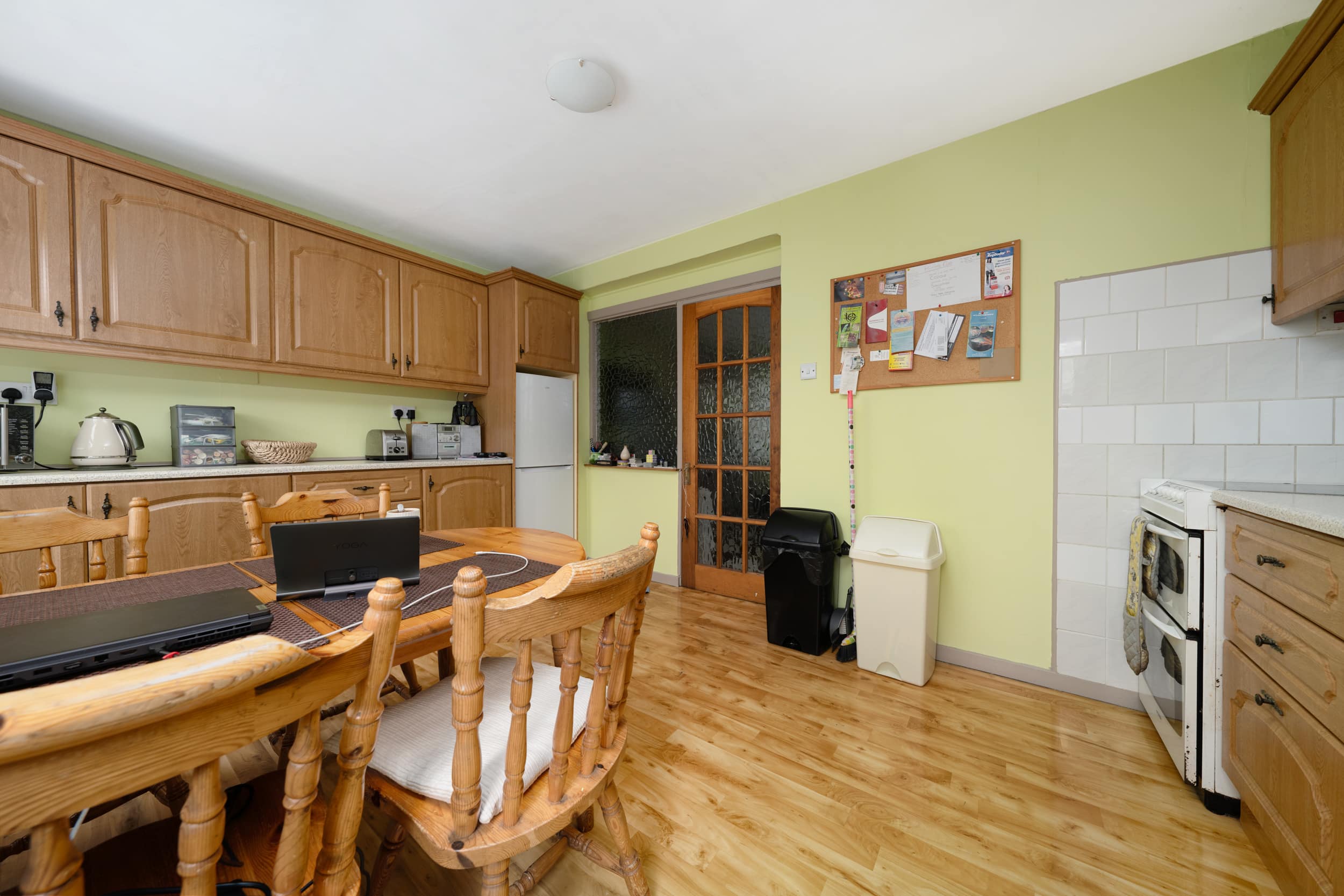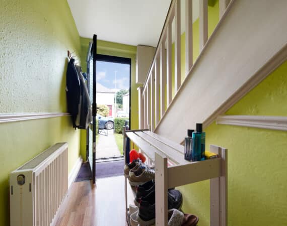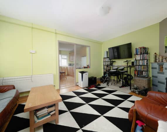 Spanning approximately 78 sq.m, the internal accommodation is both bright and well-appointed. The ground floor comprises a welcoming entrance hallway, a front reception room/third bedroom, a comfortable living room, and a spacious extended kitchen to the rear with direct access to a south-east facing garden—ideal for morning sunshine. Upstairs, you’ll find two generous double bedrooms, both with ample storage, and a fully tiled family bathroom.