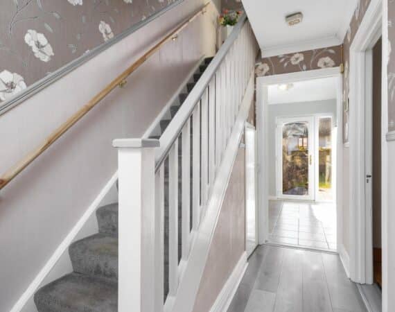 Bright and spacious internal living accommodation of c. 80 sq m comprises of entrance hallway, a cosy living room to the front, an enclosed kitchen to the rear with a separated dining room. Upstairs consists of three bedrooms and a main family bathroom. A single glass paned door from the kitchen leads onto a SOUTH WEST orientated rear garden with low maintenance.No. 35 is presented in good condition throughout and boasts a long list of additional features to include vacant possession meaning no onward chain, no rent cap, great storage, a SOUTH WEST rear garden and faces a lovely green space.