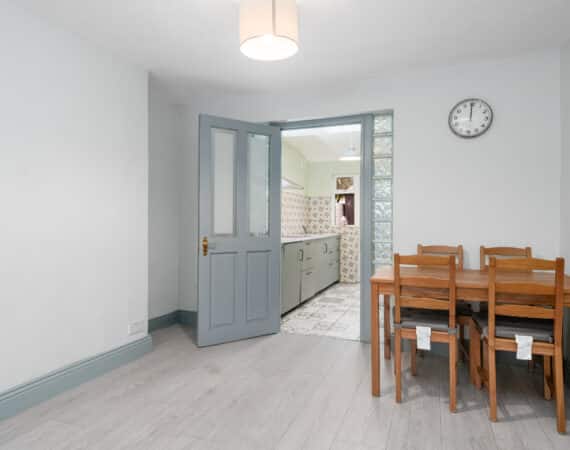 The accommodation is bright, modern and well-proportioned throughout. On the ground floor, you’re welcomed by an entrance porch leading into a spacious living area, seamlessly flowing into an open-plan dining area, the rear of the property hosts a fully-fitted contemporary kitchen along with a downstairs bedroom featuring an en-suite. Upstairs hosts 3 newly refurbished bedrooms, two doubles and one single along with the main family bathroom. To the rear, you’ll find a low-maintenance garden featuring an extra-large workshop, complete with access to a rear alley – perfect for additional storage or hobby use.