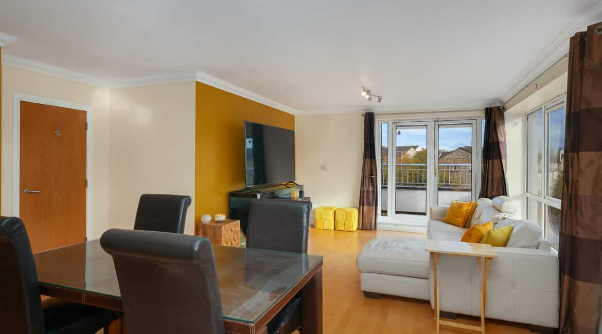RAY COOKE AUCTIONEERS are delighted to present this exceptional third floor two-bedroom, two-bathroom apartment, located in the prestigious Malin Hall development in Blanchardstown, Dublin 15. This bright and spacious home boasts superb design and light-filled living throughout with a layout of approximately c. 85 sq. m. On entering, you’re welcomed by a generous hallway that leads to a master bedroom with ensuite, a second double bedroom, and a stylish, fully-tiled family bathroom then into an open-plan living/dining/kitchen space. The lounge and dining area are set off large picture windows and a south-facing balcony, giving the home natural light, lovely views, and a relaxing outdoor spot, all while enjoying great privacy thanks to its elevated position. Apartment 38 features designated parking, guest parking, and is presented in excellent condition throughout. Transport links are outstanding with major routes including the N3, M50 and frequent bus services nearby, while Blanchardstown Shopping Centre and other amenities are within easy reach. Early viewing is highly advised, call RAY COOKE AUCTIONEERS today on 086 828 9950 or 01 554 1699 for more details.