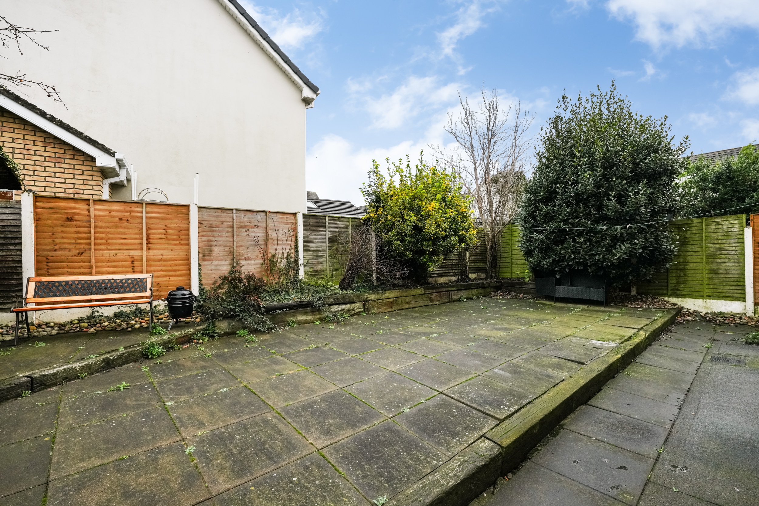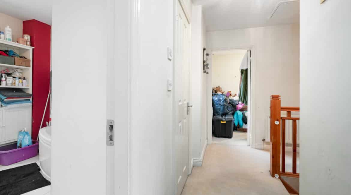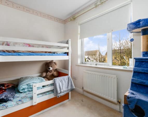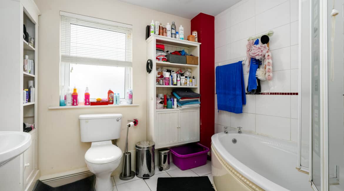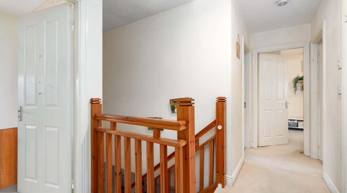 Upstairs hosts four well-proportioned bedrooms, including a master bedroom with ensuite bathroom. Fitted wardrobes feature in three of the four bedrooms, offering excellent storage solutions. A fully tiled family bathroom serves the remaining bedrooms.