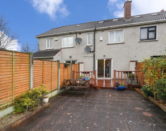 RAY COOKE AUCTIONEERS are delighted to present this superb three-bedroom mid-terrace family home to the market, ideally positioned in the ever-popular Monastery Gate Lawns, Clondalkin, Dublin 22. This highly sought-after development continues to attract both first-time buyers and investors alike due to its unrivalled location just a short stroll from The Red Cow Luas Stop, Monastery Road, Clondalkin Village, and the M50 motorway, all within easy reach. Bright, well-proportioned and immaculately maintained, internal living accommodation of c. 74 sq. m comprises an entrance porch leading into a tiled hallway, fully fitted kitchen/dining area with tiled flooring, and a spacious lounge to the rear. Upstairs, you’ll find a landing area, master bedroom with fully tiled ensuite, second double bedroom, single bedroom, and a fully tiled family bathroom. Sliding doors from the lounge open onto a sunny south-facing rear garden, complete with modern decking and patio area, ideal for outdoor entertaining. To the front, the property benefits from designated parking and double-glazed windows throughout. No. 4 is presented in excellent condition and boasts a warm, welcoming layout that is sure to appeal to those seeking a home in this quiet and well-maintained development. Early viewing is highly advised, call RAY COOKE AUCTIONEERS today on 086 828 9950 or 01 554 1699 for more details.