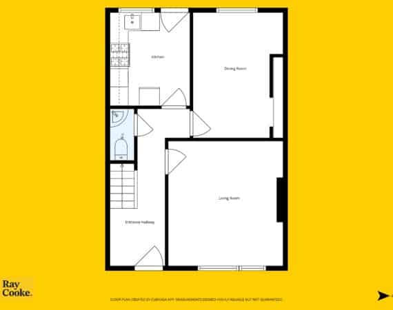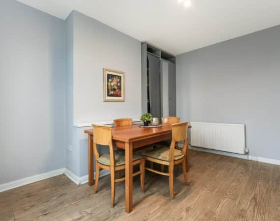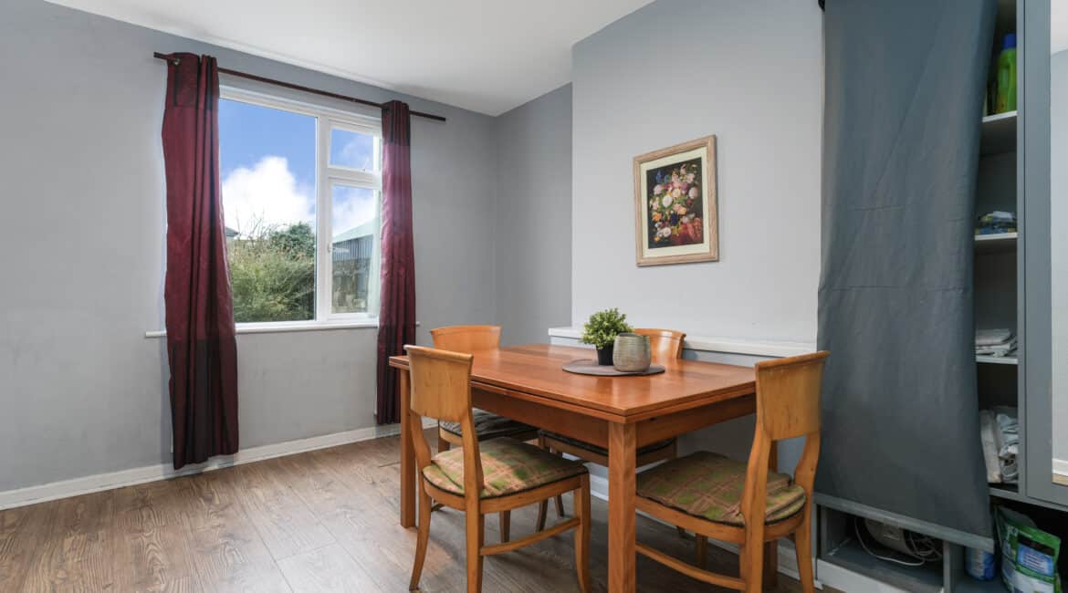 Internally, the property extends to c. 95 sq.m and is laid out in a practical and well-proportioned manner. The entrance hallway leads through to a spacious living room, followed by a convenient understairs guest WC. To the rear lies a dining room and the kitchen area, which opens directly onto the extremely large rear garden, making it ideal for family living and entertaining.