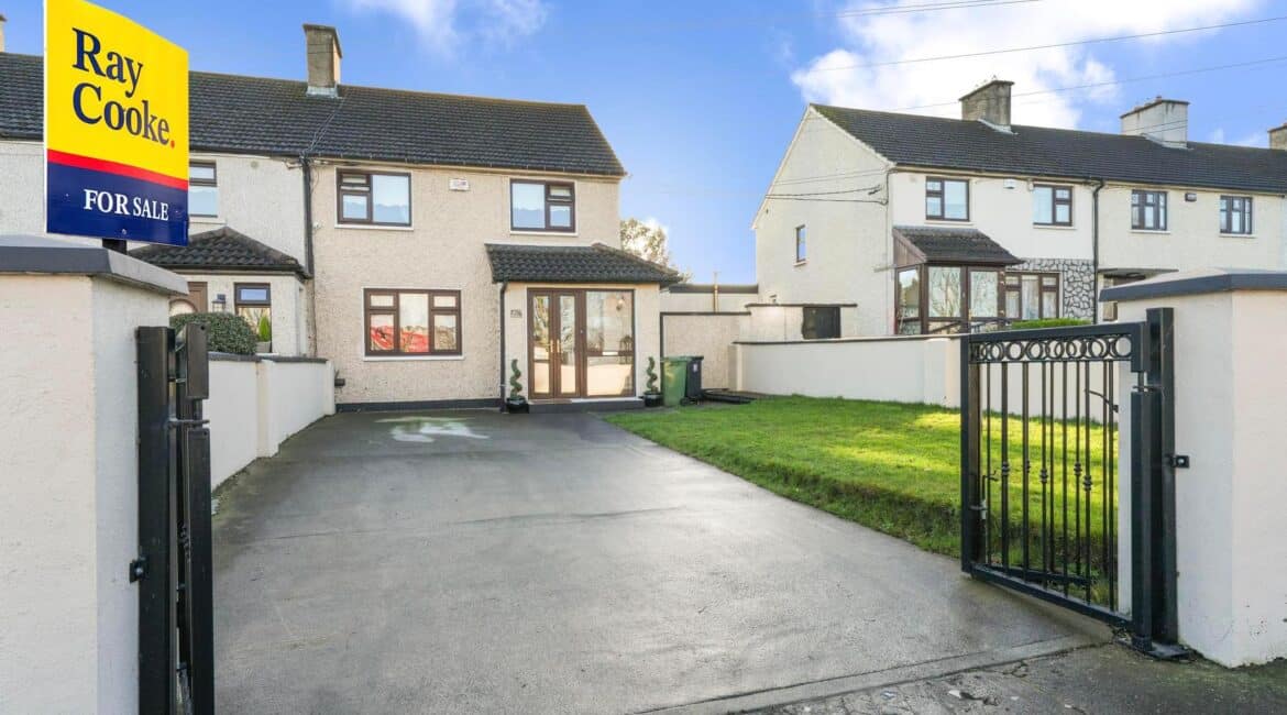 RAY COOKE AUCTIONEERS are excited to present this fantastic 3-bedroom end of terrace family home with large side entrance to the market, ideally located in the heart of Ballyfermot and close to a wide range of local amenities. The Chapelizod Bypass and M50 motorway are both easily accessible, and the Liffey Valley Shopping Centre is just a short drive away. Ballyfermot is well-serviced with excellent facilities, including local GP services, medical centres, sports and recreational clubs, and numerous shopping outlets. There are also highly regarded primary and secondary schools, as well as third-level colleges, all within close proximity to the property.Bright and spacious internal living accommodation of c. 85 sq m comprises of entrance hallway, living room, kitchen/dining room, 3 spacious bedrooms and main family bathroom. The rear garden benefits from a south westerly orientation and there is ample off street parking for multiple cars to the front. No. 415 is presented in excellent condition throughout and boasts a long list of additional features to include brand new bathroom suite, upgraded wiring/heating and a fully integrated kitchen. Ideal for first time buyers and investors. Early viewing is highly advised, call Ray Cooke Auctioneers for further information or to arrange viewing!!