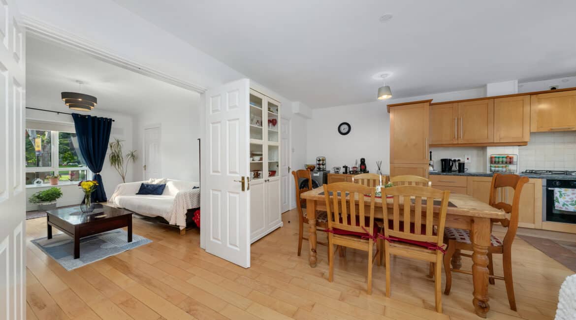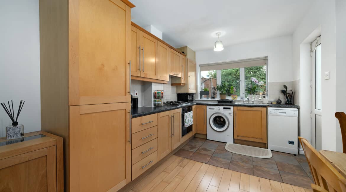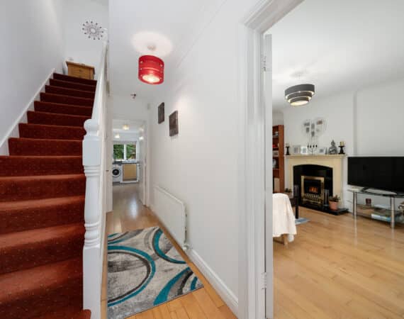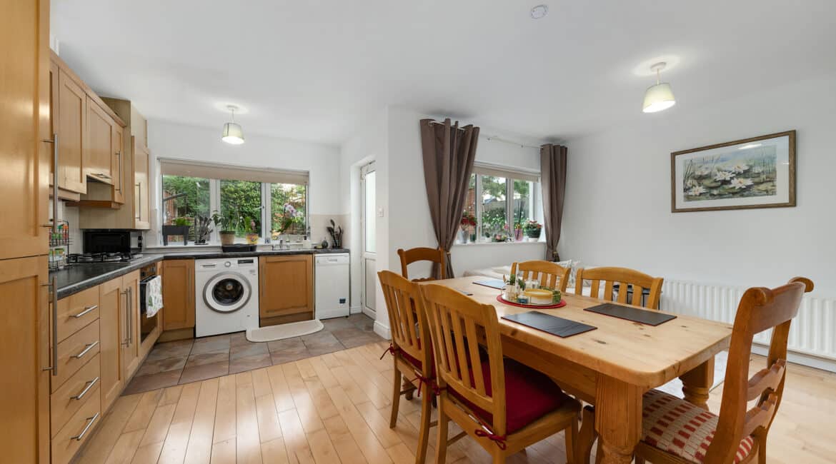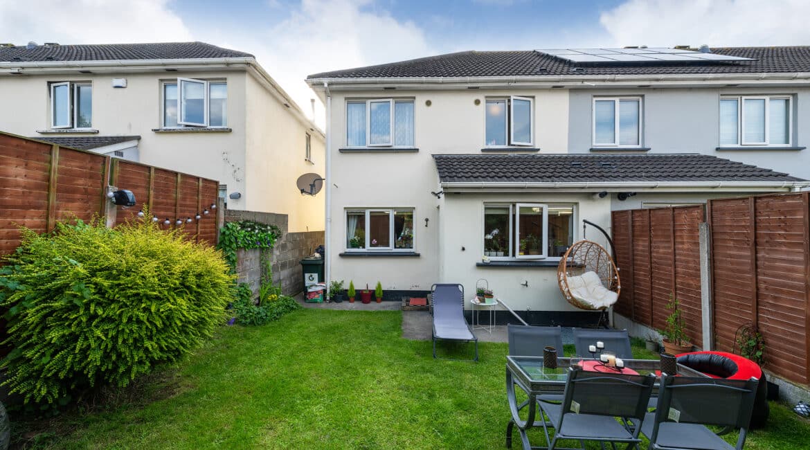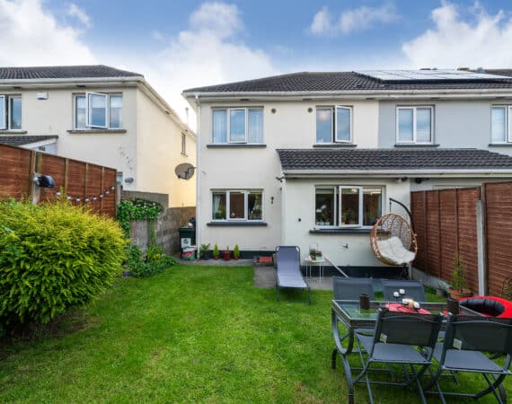 RAY COOKE AUCTIONEERS proudly present this excellent three bedroom end of terrace property to the market within the ever sought after Liffey Crescent, Lucan. The home boasts a prime location within walking distance of Ballyowen shopping centre, schools, sports and recreational facilities. Lucan village and Liffey Valley shopping centre are also within easy reach. Public transport is excellent to and from the city centre via Dublin Bus with a bus stop only 2 minutes walk while the M50 gives access to the airport and beyond. Bright & spacious maintained interior living accommodation of c. 94 sq m comprises of entrance hallway with guest wc, lounge, fully fitted kitchen with dining area, two double bedrooms(one with EnSuite), one single bedroom and main family bathroom. No. 43 has the benefit of gas fired central heating, double glazed windows, light filled interior, quality flooring throughout and a sunny rear garden with side entrance. Call Ray Cooke Auctioneers for further information or to arrange viewing!