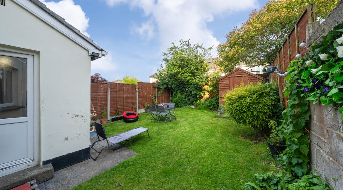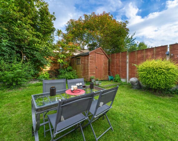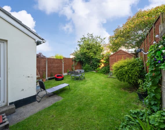 – Sunny rear garden with side entrance