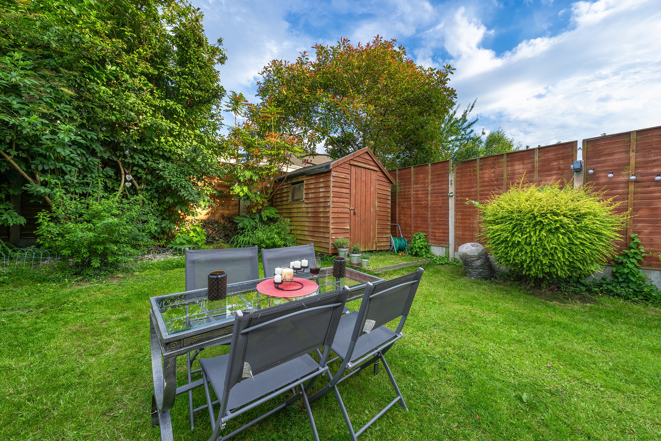 – Sunny rear garden with side entrance