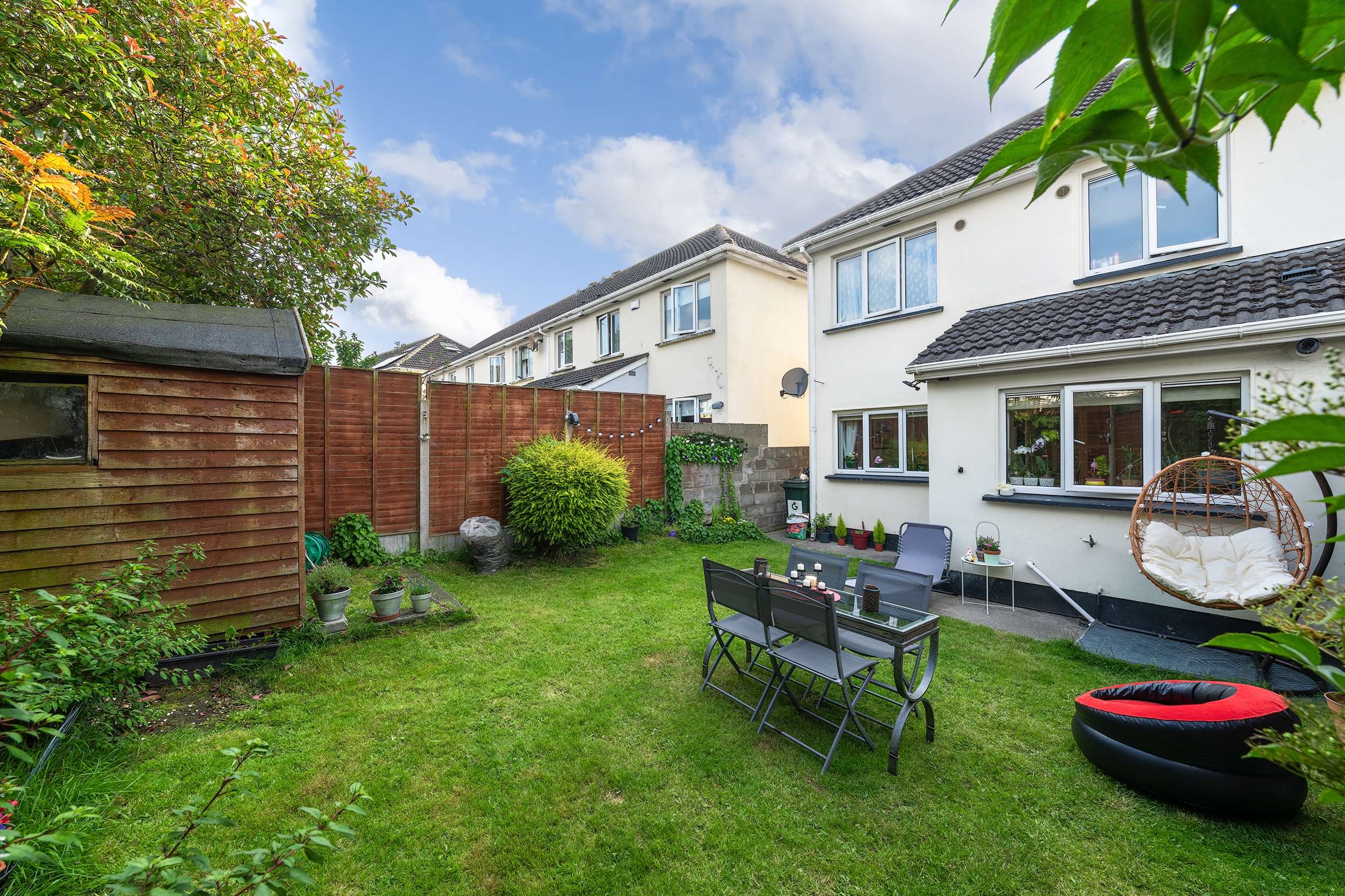 RAY COOKE AUCTIONEERS proudly present this excellent three bedroom end of terrace property to the market within the ever sought after Liffey Crescent, Lucan. The home boasts a prime location within walking distance of Ballyowen shopping centre, schools, sports and recreational facilities. Lucan village and Liffey Valley shopping centre are also within easy reach. Public transport is excellent to and from the city centre via Dublin Bus with a bus stop only 2 minutes walk while the M50 gives access to the airport and beyond. Bright & spacious maintained interior living accommodation of c. 94 sq m comprises of entrance hallway with guest wc, lounge, fully fitted kitchen with dining area, two double bedrooms(one with EnSuite), one single bedroom and main family bathroom. No. 43 has the benefit of gas fired central heating, double glazed windows, light filled interior, quality flooring throughout and a sunny rear garden with side entrance. Call Ray Cooke Auctioneers for further information or to arrange viewing!