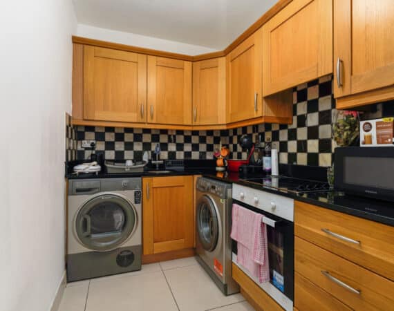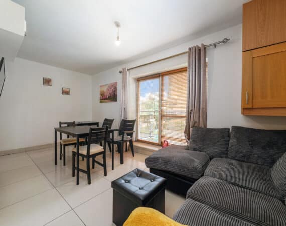 The accommodation extends to approximately 42 sq.m and comprises a smart entrance hallway, a bright and airy open-plan kitchen/dining/living room with access to a private balcony, a generous double bedroom with built-in wardrobes, and a stylish family bathroom with bath and overhead shower.