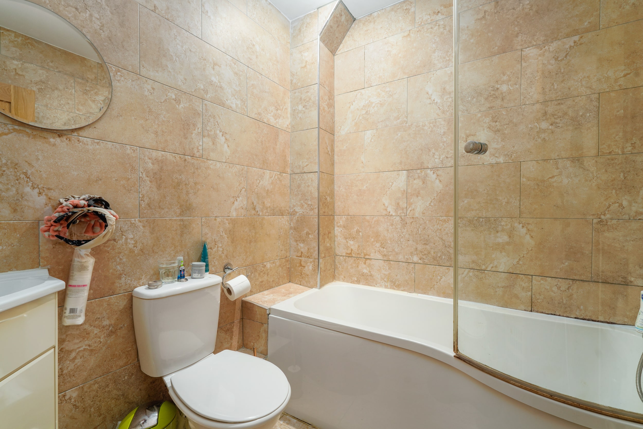 • Contemporary bathroom with bath & overhead shower