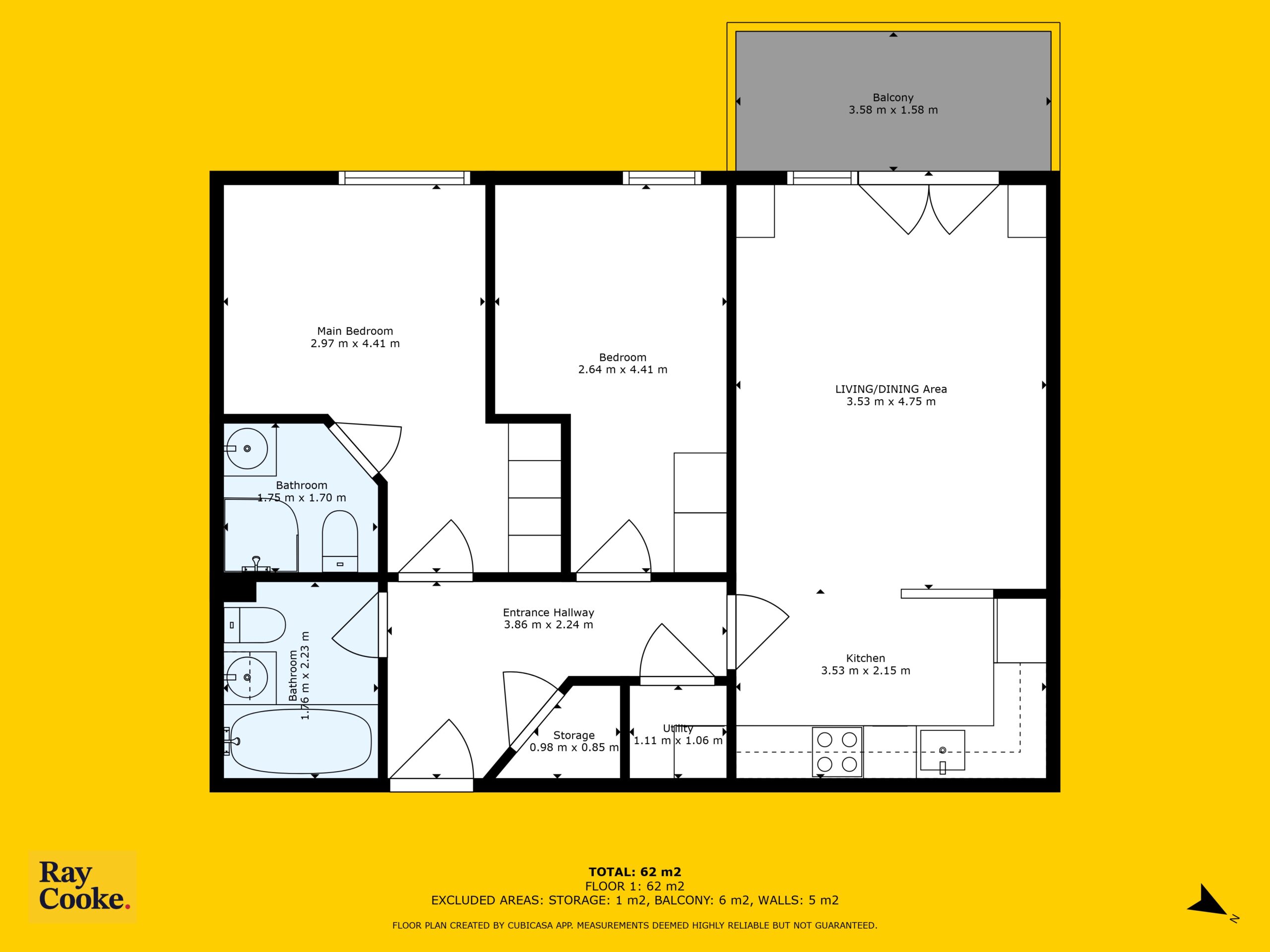 • Open-plan kitchen/living/dining area with south-facing balcony