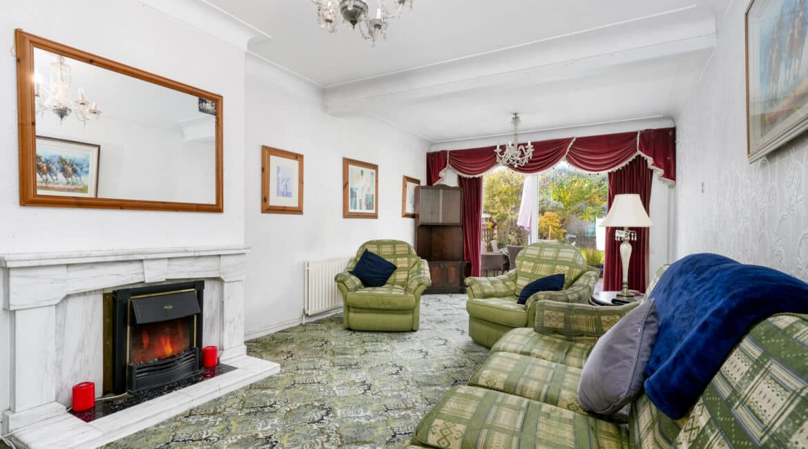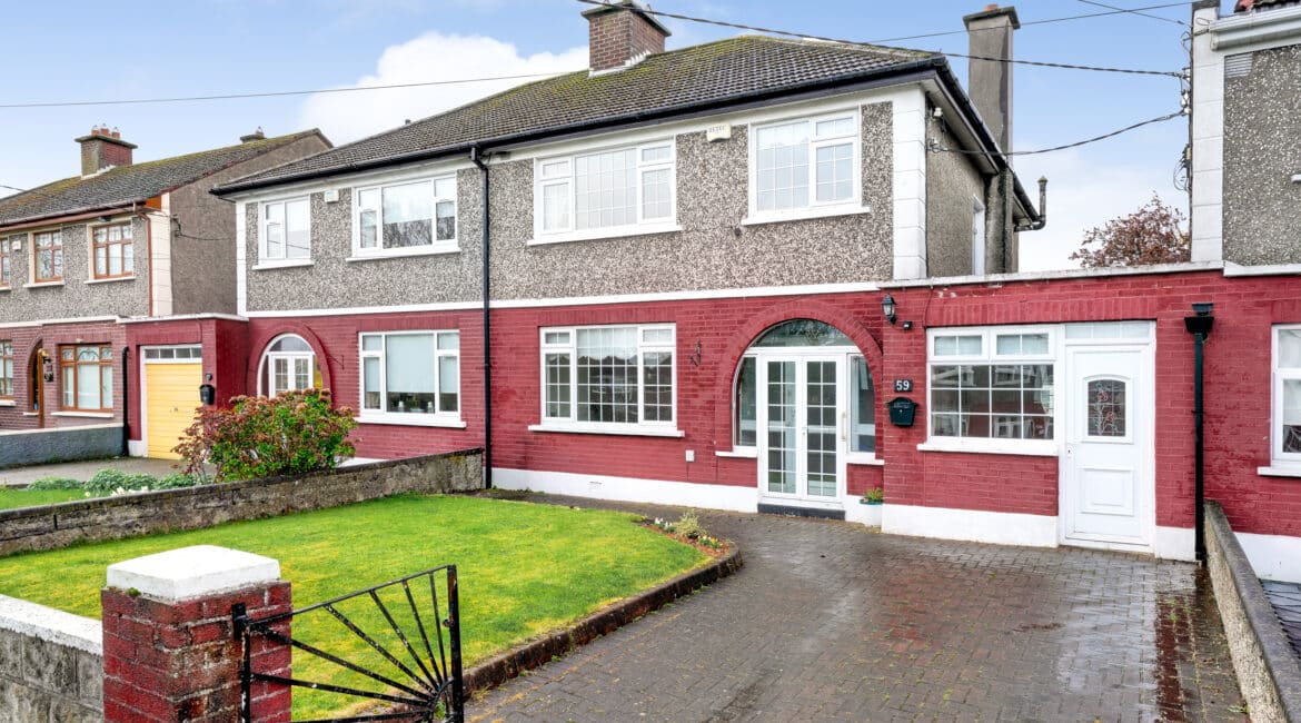 This fantastic family home offers approximately 110 sq.m of well-appointed living space comprises of a storm porch leading into an inviting entrance hallway with guest WC, dining room to front with double doors leading to a large living room to rear with feature fireplace, extended fully fitted kitchen and dining area to rear, with access to large south facing rear garden. Upstairs, there are three generously sized bedrooms and a fully tiled bathroom with a shower. This superb family home is presented in great condition throughout and boasts numerous features, including oil-fired central heating, double-glazed windows throughout, front driveway, off-street parking and a larg south facing rear garden to name a few. Don’t miss this fantastic opportunity to own a home of this calibre! Viewing is strongly advised; call Ray Cooke Auctioneers on 086 0469458 or 01 6995050 today for further information or to arrange viewing!!