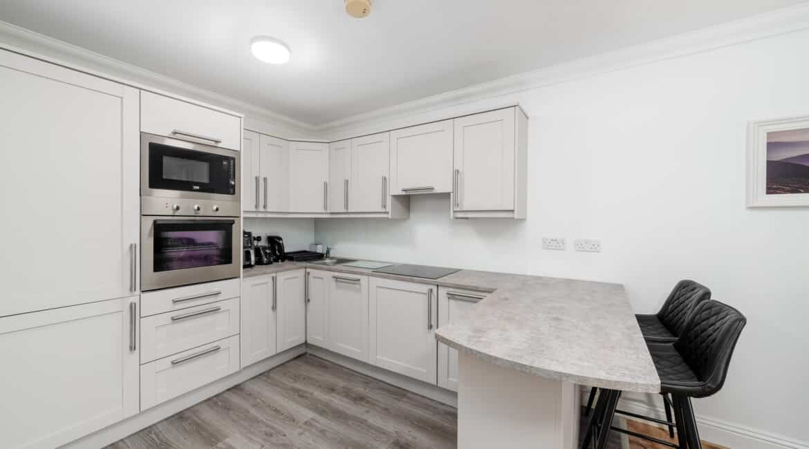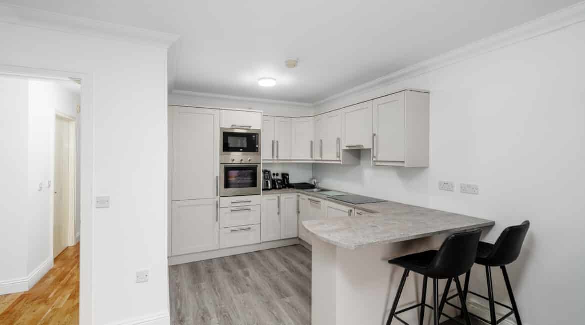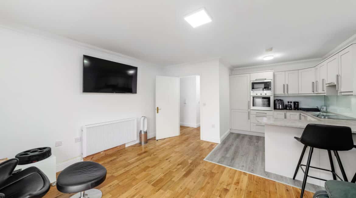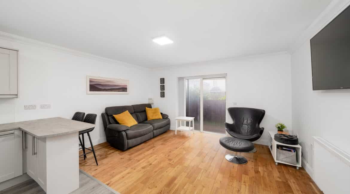 This ground floor two-bedroom apartment offers a bright and well-laid-out interior with an open-plan living/dining area, modernised fully fitted kitchen, two double bedrooms with built-in wardrobes, master ensuite, and a main bathroom. The living space opens onto a private patio, while resident parking and landscaped communal areas complete the property.