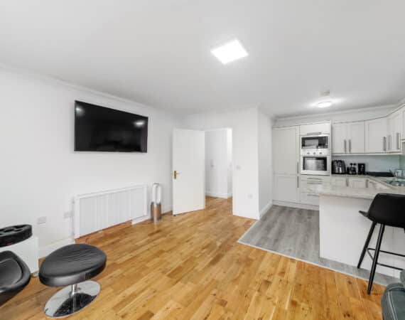 This ground floor two-bedroom apartment offers a bright and well-laid-out interior with an open-plan living/dining area, modernised fully fitted kitchen, two double bedrooms with built-in wardrobes, master ensuite, and a main bathroom. The living space opens onto a private patio, while resident parking and landscaped communal areas complete the property.