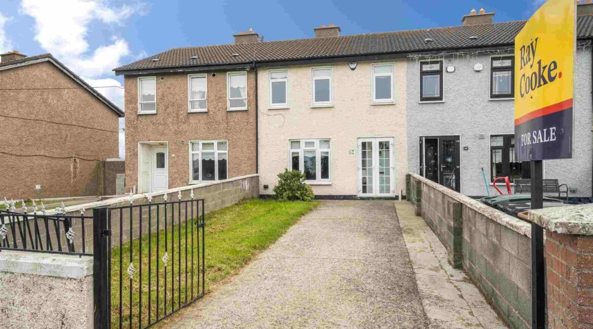 RAY COOKE AUCTIONEERS are delighted to present this three bedroom mid terrace property to the market in the popular Greenfort Lawns, Clondalkin. The Greenfort development finds itself within walking distance of a wide array of local amenities including convenience stores, primary and secondary schools, leisure facilities and not to mention having Liffey Valley Shopping Centre within a stone’s throw. On a transport note, the M50 motorway is easily accessible and there are a host of bus routes to the front of the development.Internal living accommodation of c. 80 Sqm can be found here and in brief consists of storm porch, entrance hall, lounge and fully fitted kitchen with dining area to the ground floor. Upstairs you will find 3 bedrooms, guest wc and the family bathroom. Externally you will find a fully enclosed sunny rear garden which is completely low maintenance. The front offers ample off-street parking. No. 62 comes to the market in good condition throughout and further benefits here include double glazed windows, light filled interior, gas fired central heating and quality flooring throughout. Due to location and opportunity, we see this property being extremely popular so please contact us at your earliest convenience to arrange a viewing.