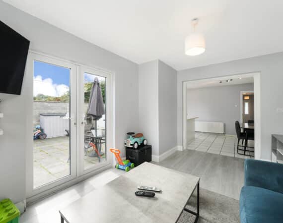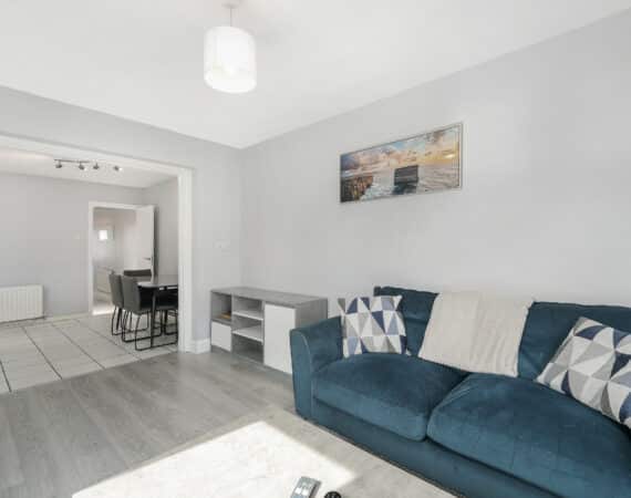 Bright, airy and most spacious Internal living accommodation of c. 101 sqm compromises of entrance hallway, large living room, open plan fully fitted kitchen/dining area and extended second living space. On the first floor you have three generous bedrooms and tiled main family bathroom. Double doors from your living space lead out to a paved patio area with a beautiful well-maintained rear garden that comes private & fully enclosed which makes it perfect for relaxing on them long sunny summer evenings, you also have the benefit of having a large side entrance whilst the front provides off street parking with a front lawn also.