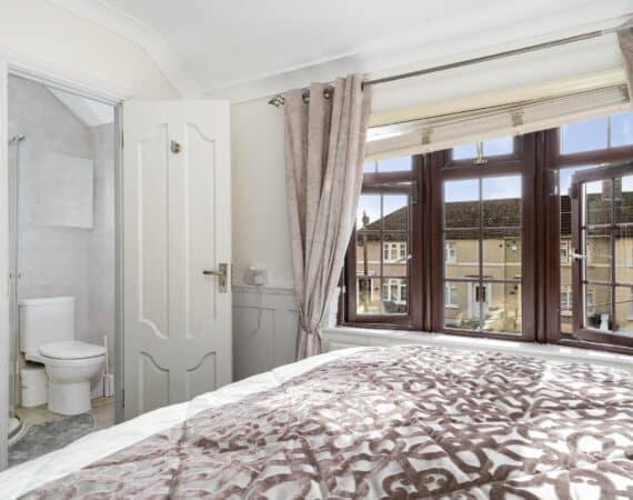 Primary bedroom with fully tiled ensuite