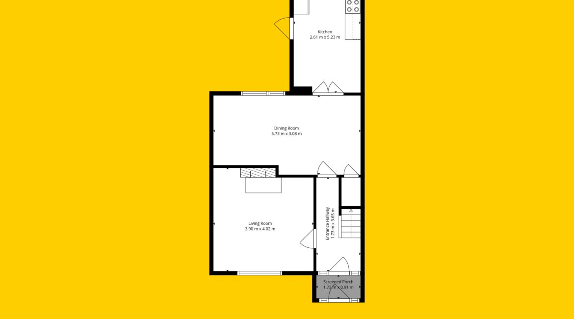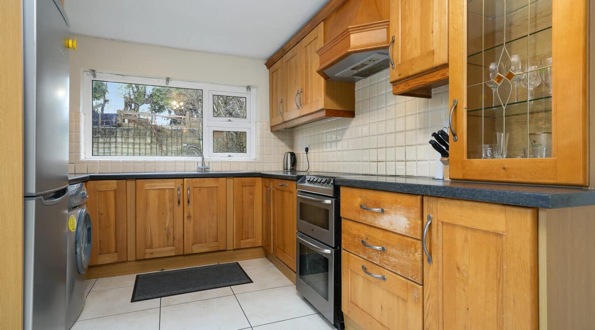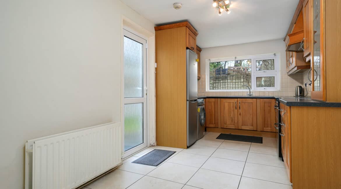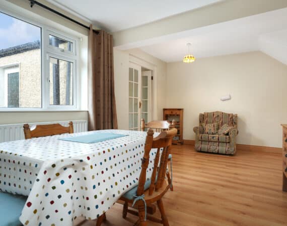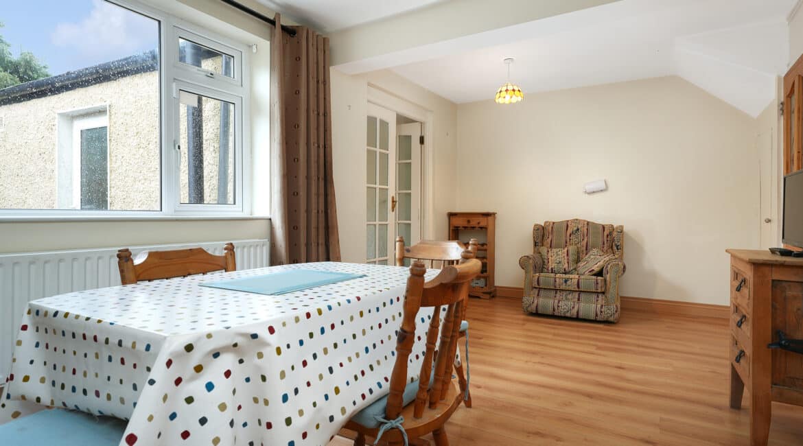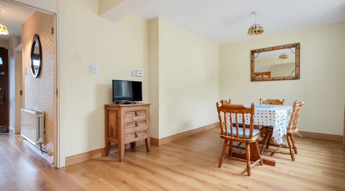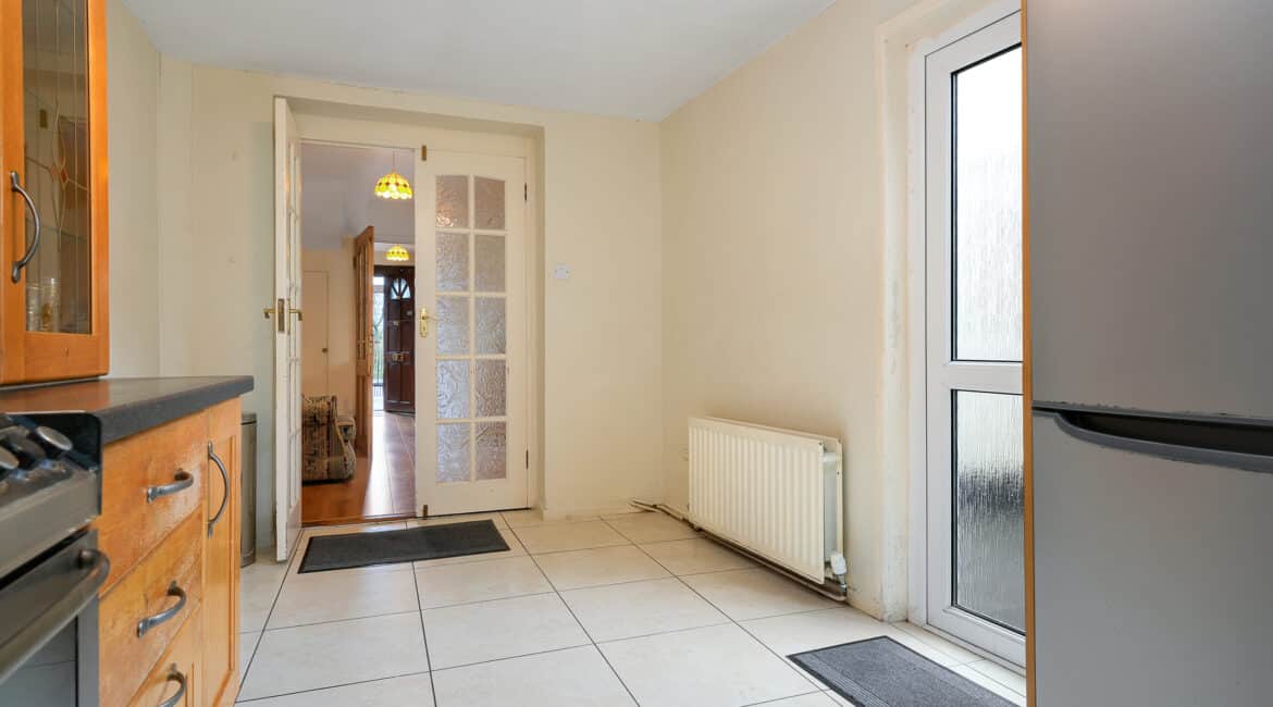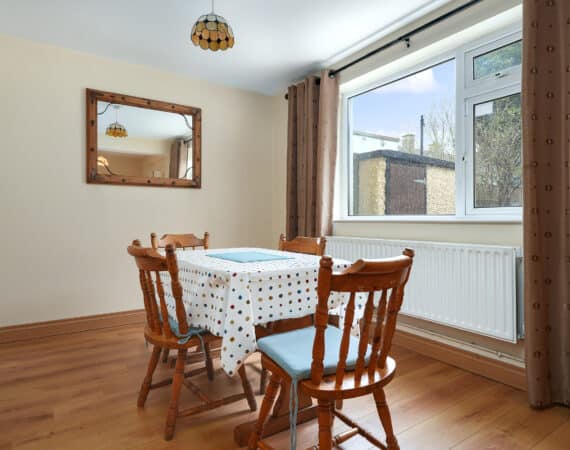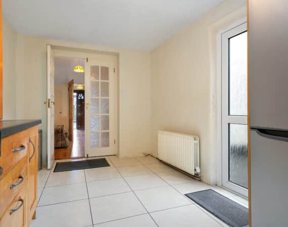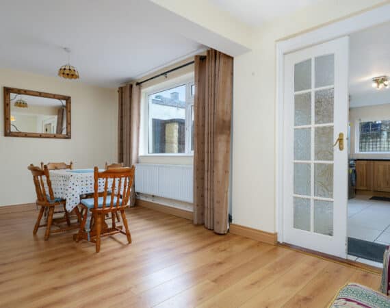 Internal living accommodation of approximately c. 96 sq.m comprises of a front porch leading into a welcoming entrance hallway. Off the hallway is a bright dining room to the front, while the hallway also leads through to a spacious living room which in turn opens into a large kitchen extension to the rear. The kitchen area provides direct access to a private south-facing rear garden, ideal for outdoor dining and entertaining, and also benefits from shared side access.