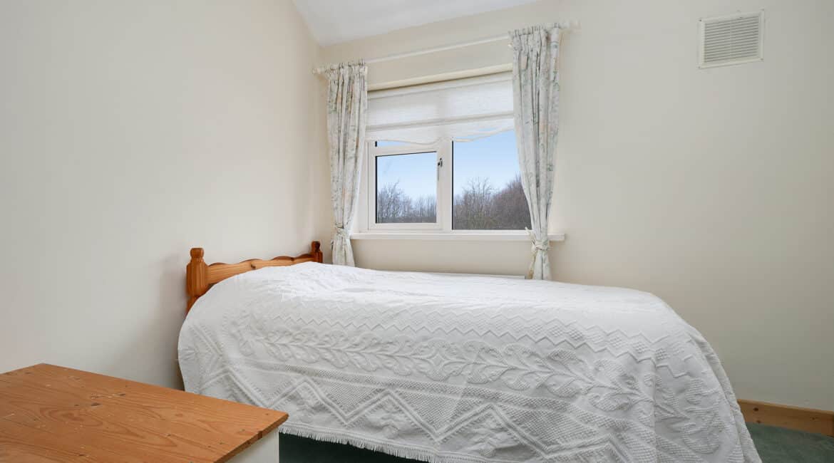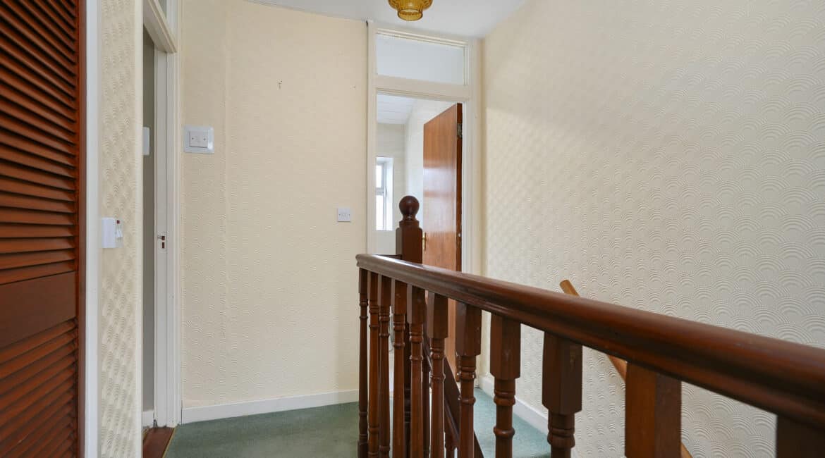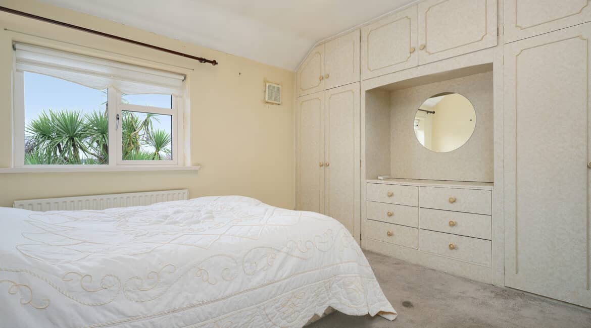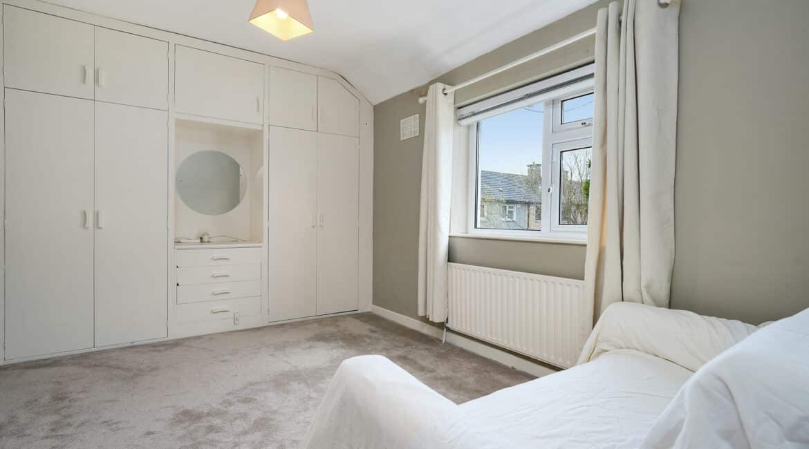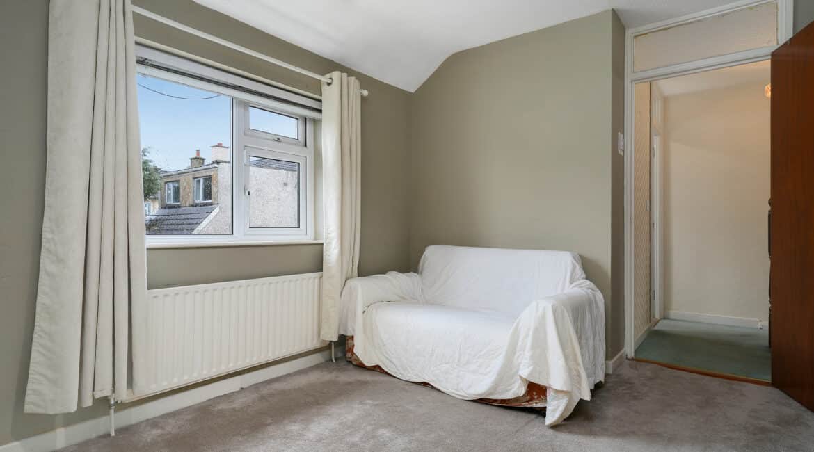 Upstairs hosts three well-proportioned bedrooms, including two double bedrooms with built-in wardrobes and one single bedroom, along with a large family bathroom complete with electric shower.