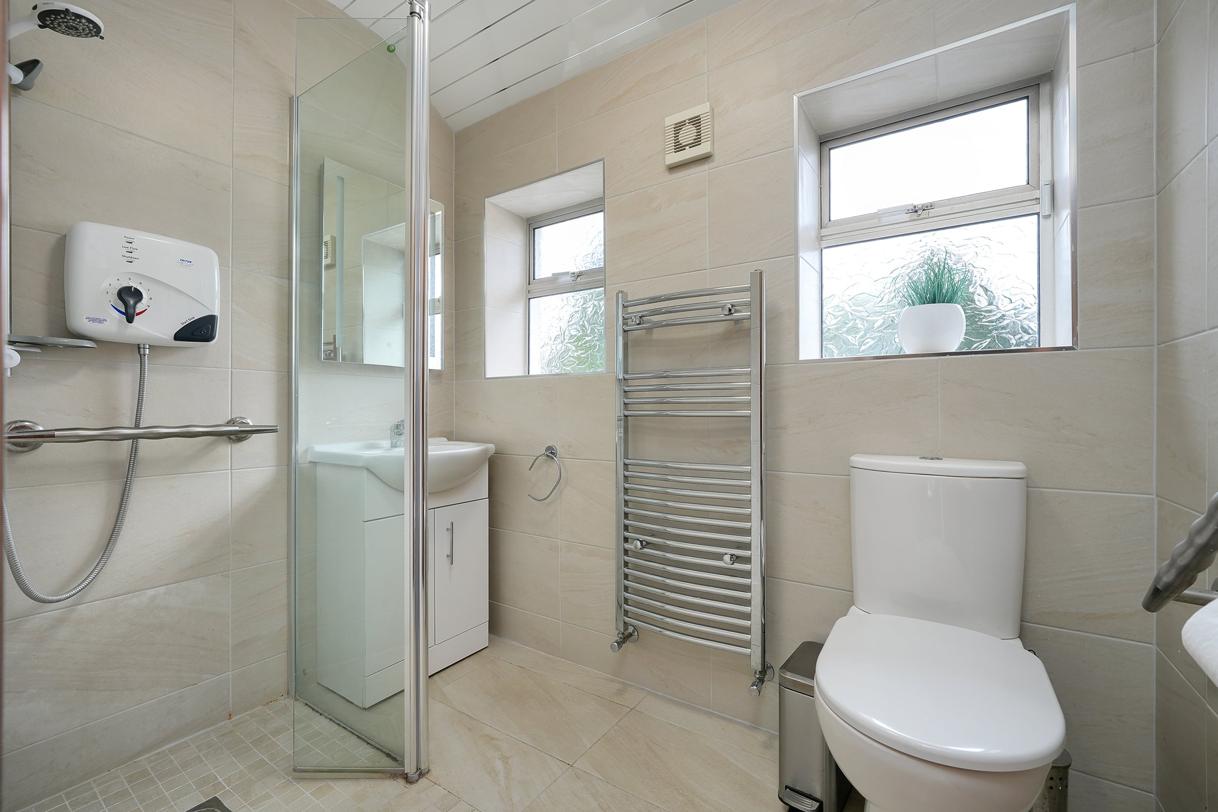 – Large family bathroom with electric shower