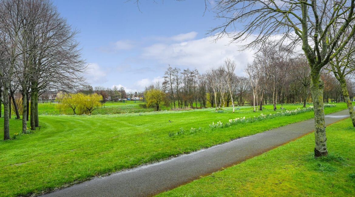 – Overlooking green park