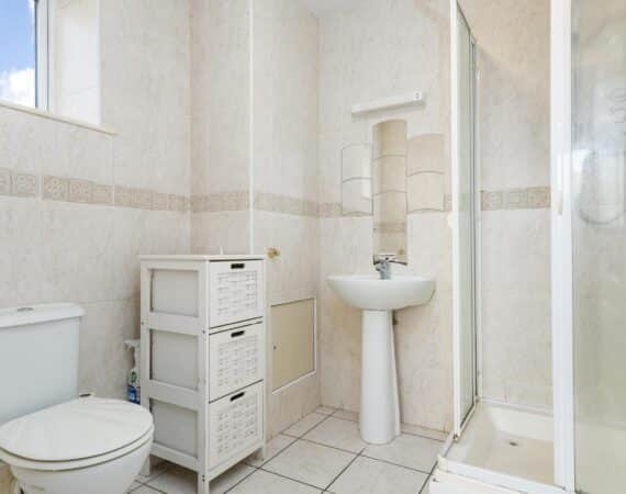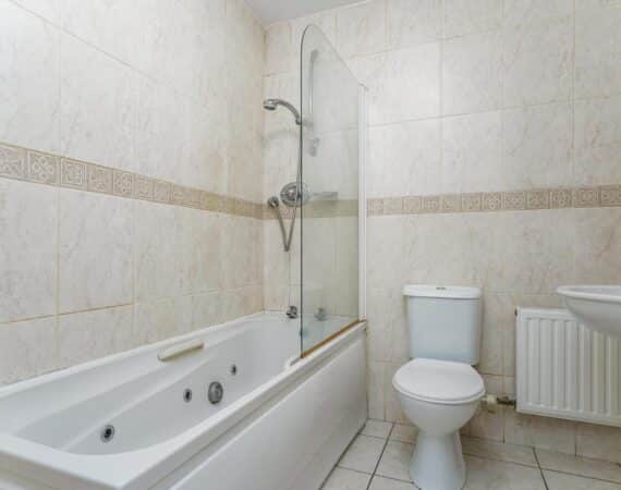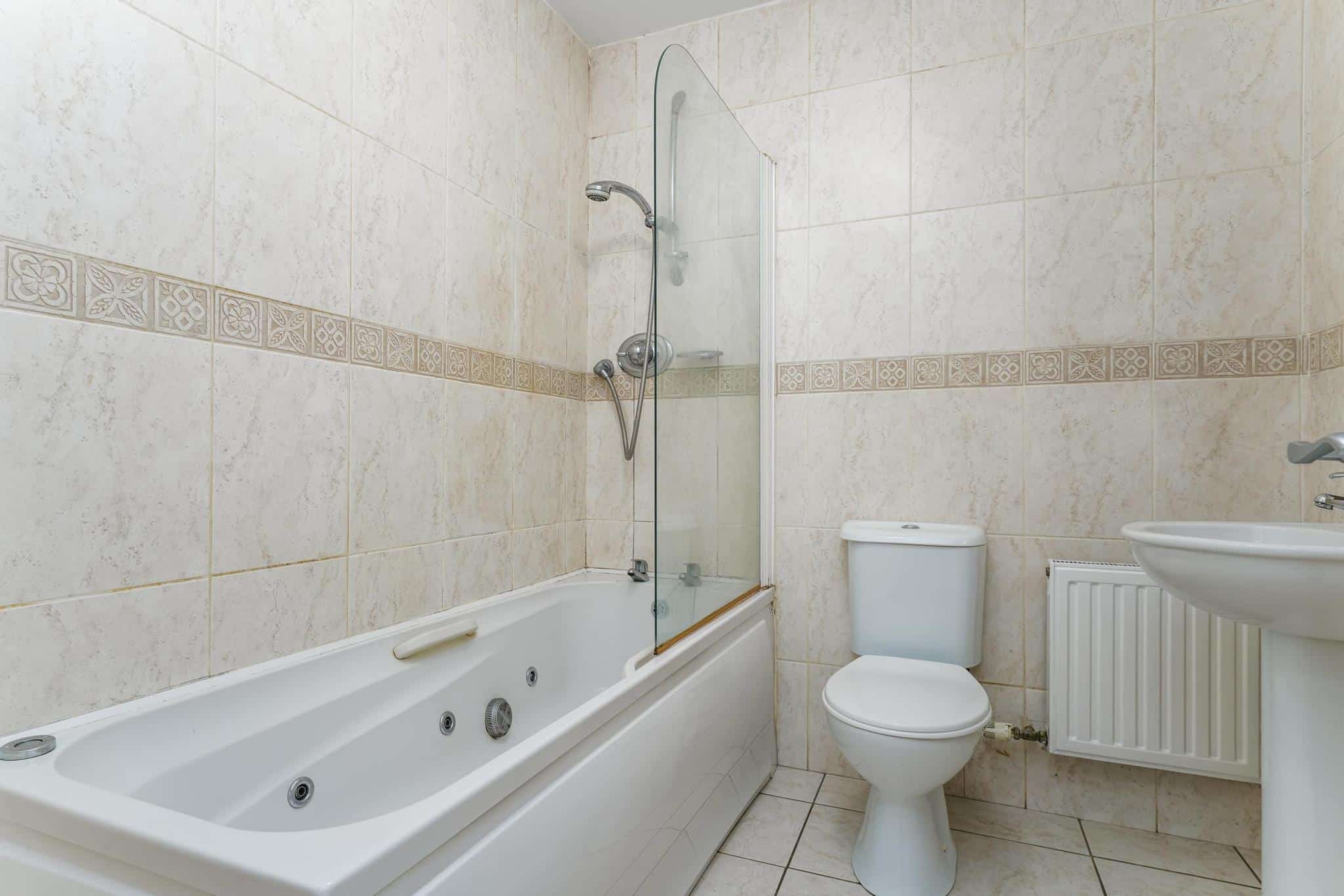 – Main family bathroom fully tiled