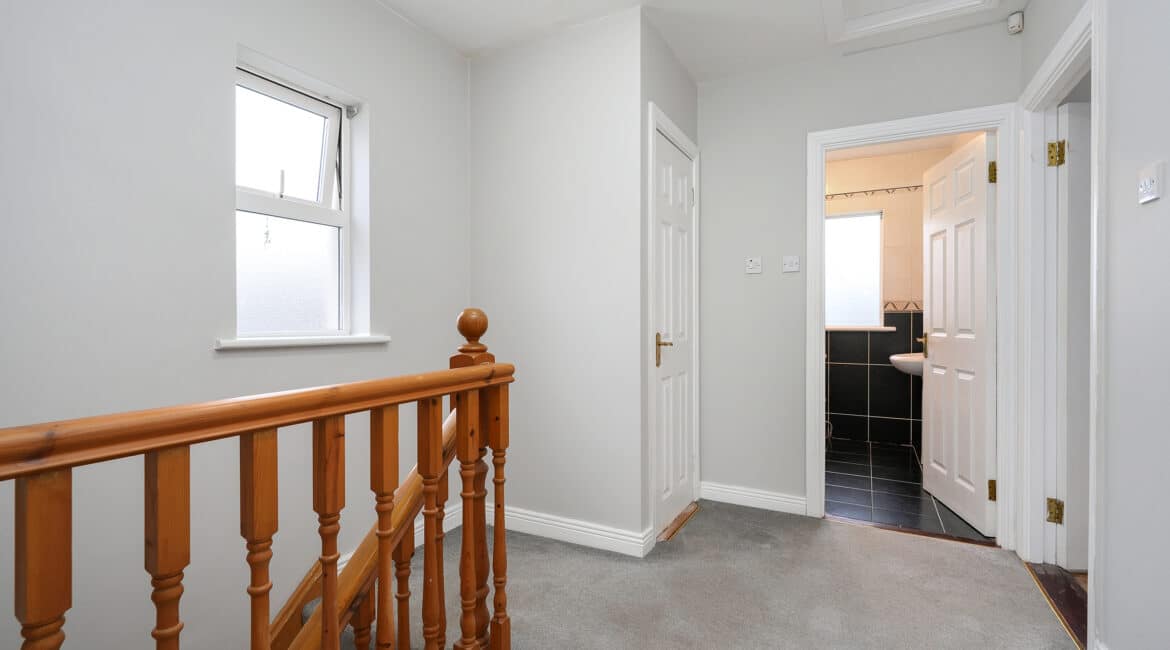 Extending to approximately 95 sq.m., this bright and exceptionally well-proportioned home offers a wonderful opportunity to secure a residence in a tranquil setting. The front door opens to a welcoming entrance hallway with a convenient downstairs WC, leading to a spacious and light-filled lounge with a feature fireplace. To the rear, the fully fitted kitchen comes with appliances included and provides access through the back door to a sunny, extra-large rear garden—one of the largest in the estate—with the added benefit of a side entrance. Upstairs, the accommodation comprises two generously sized double bedrooms(one with ensuite) and one single bedroom, along with a fully tiled main family bathroom. No. 88 Blackcastle Demesne further benefits from high-quality flooring throughout, gas-fired central heating, built-in wardrobes, a fireplace, an exceptionally large garden, potential for attic conversion (subject to planning), vacant possession ready for immediate occupancy, a quiet cul-de-sac location, and ample parking. Presented in immaculate condition throughout, this attractive home offers excellent potential for first-time buyers, those looking to trade up, and investors alike. Sure to attract strong interest, contact Ray Cooke Auctioneers today on 086 8225318 or 01 554 1699 for further information or to arrange a viewing.