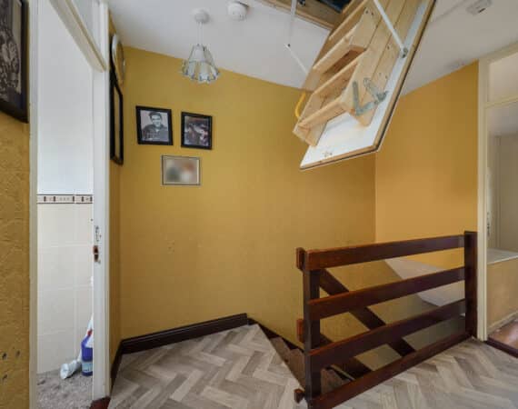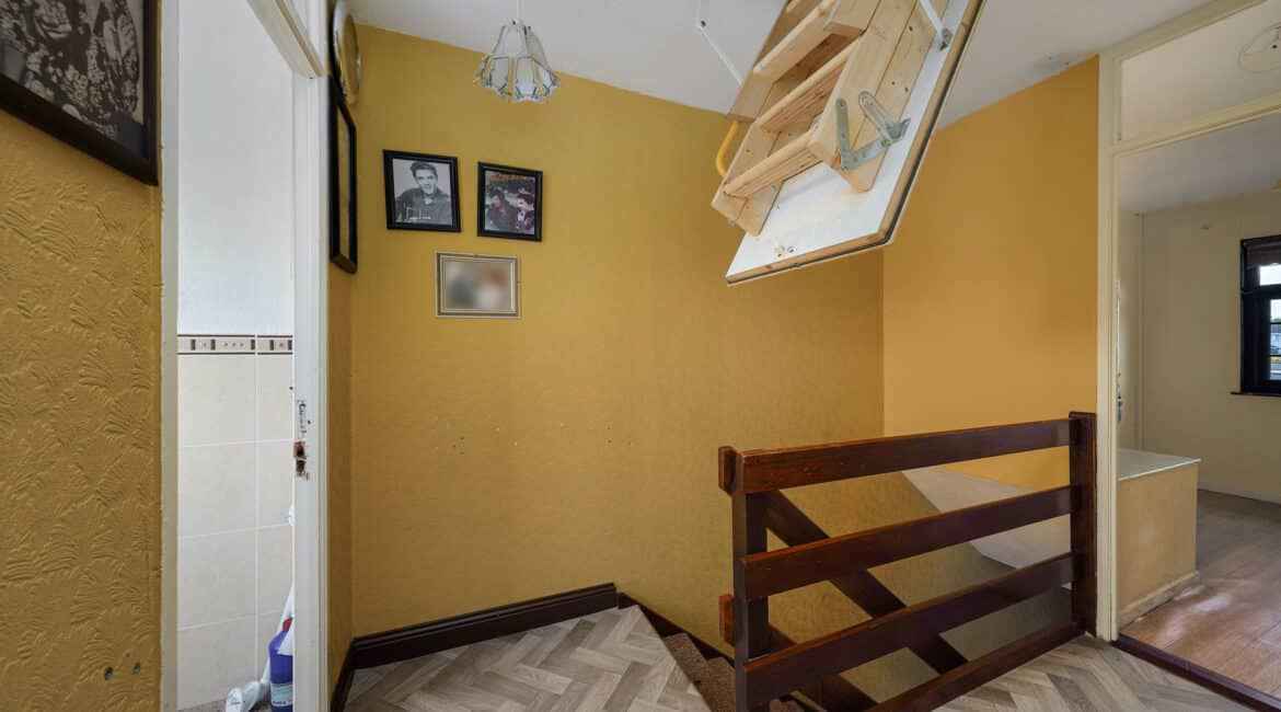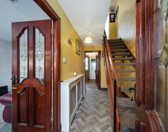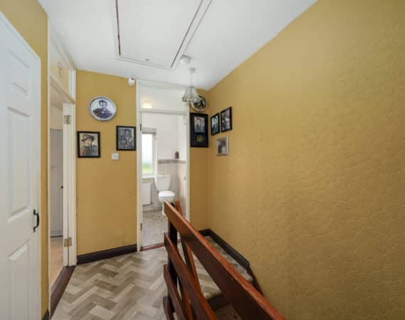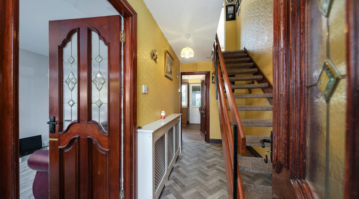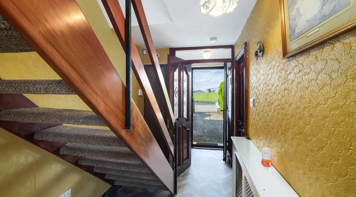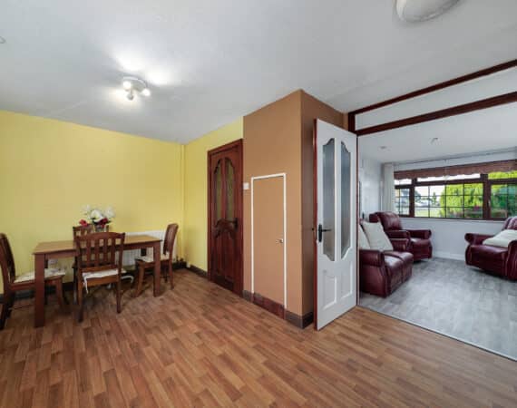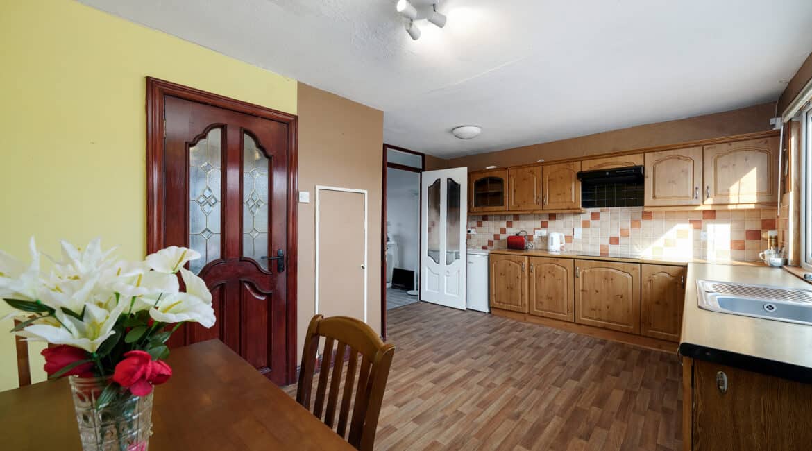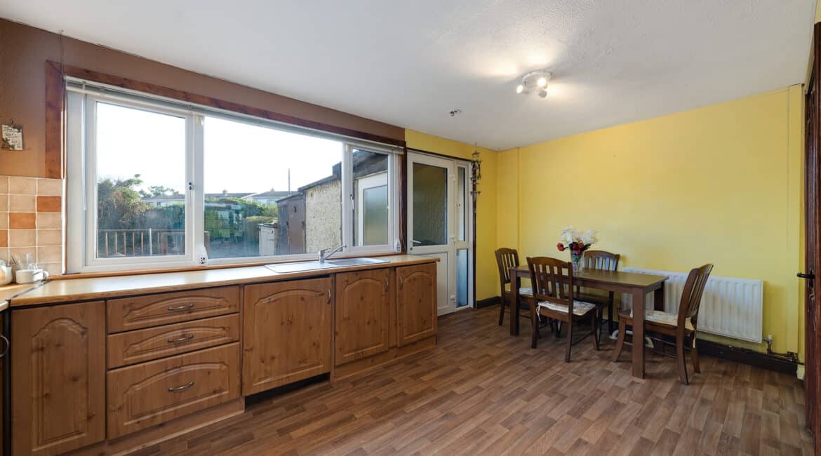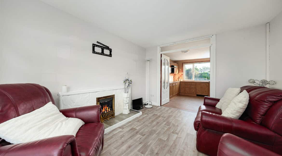 Internally, No. 9 spans c. 85 sqm, and boasts a bright and well-proportioned layout comprising an entrance hallway, spacious front living room, a fully fitted kitchen/dining area to the rear, three generous bedrooms, and two bathrooms. The property has been lovingly maintained over the years and offers excellent scope for modernisation or extension (subject to planning permission).