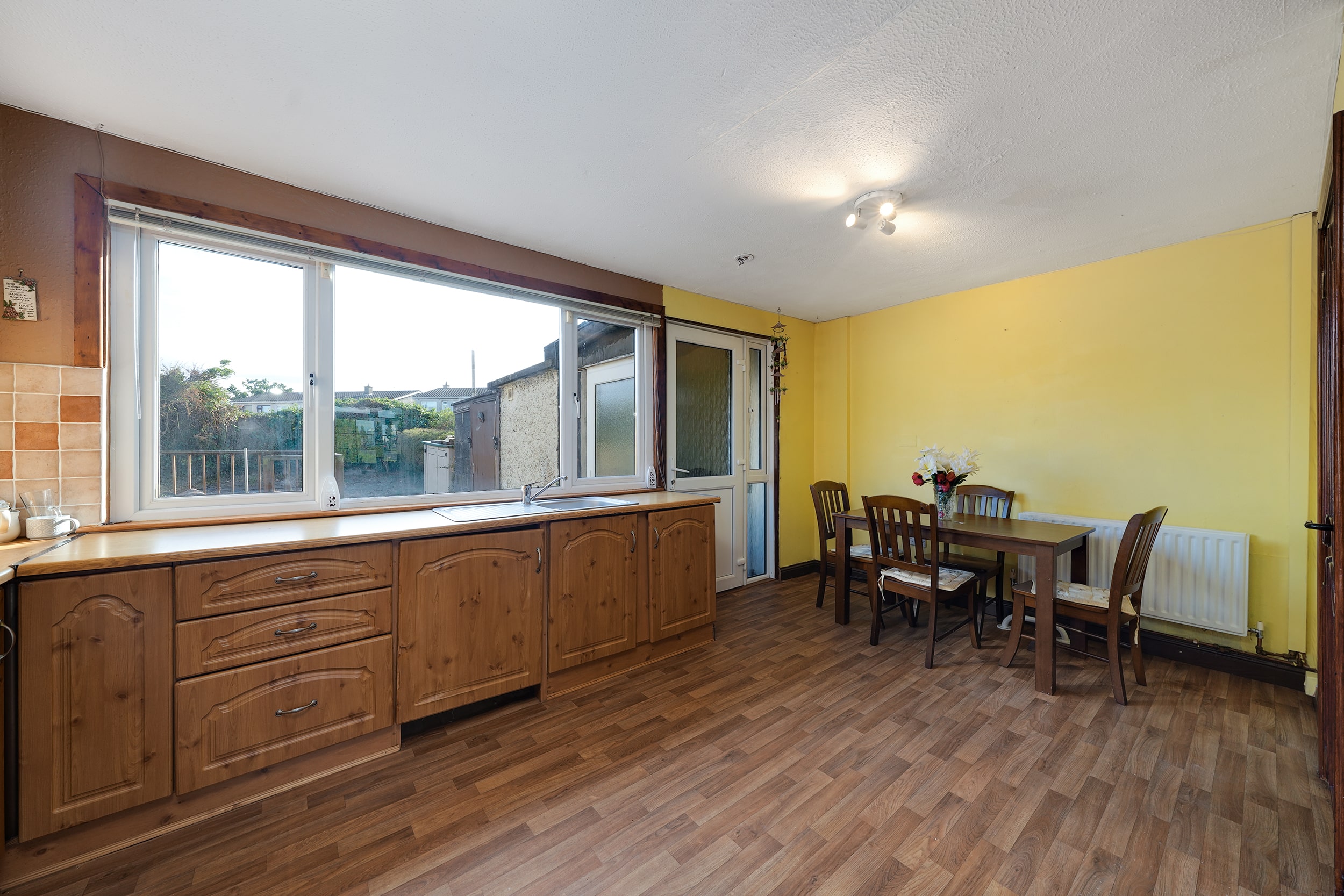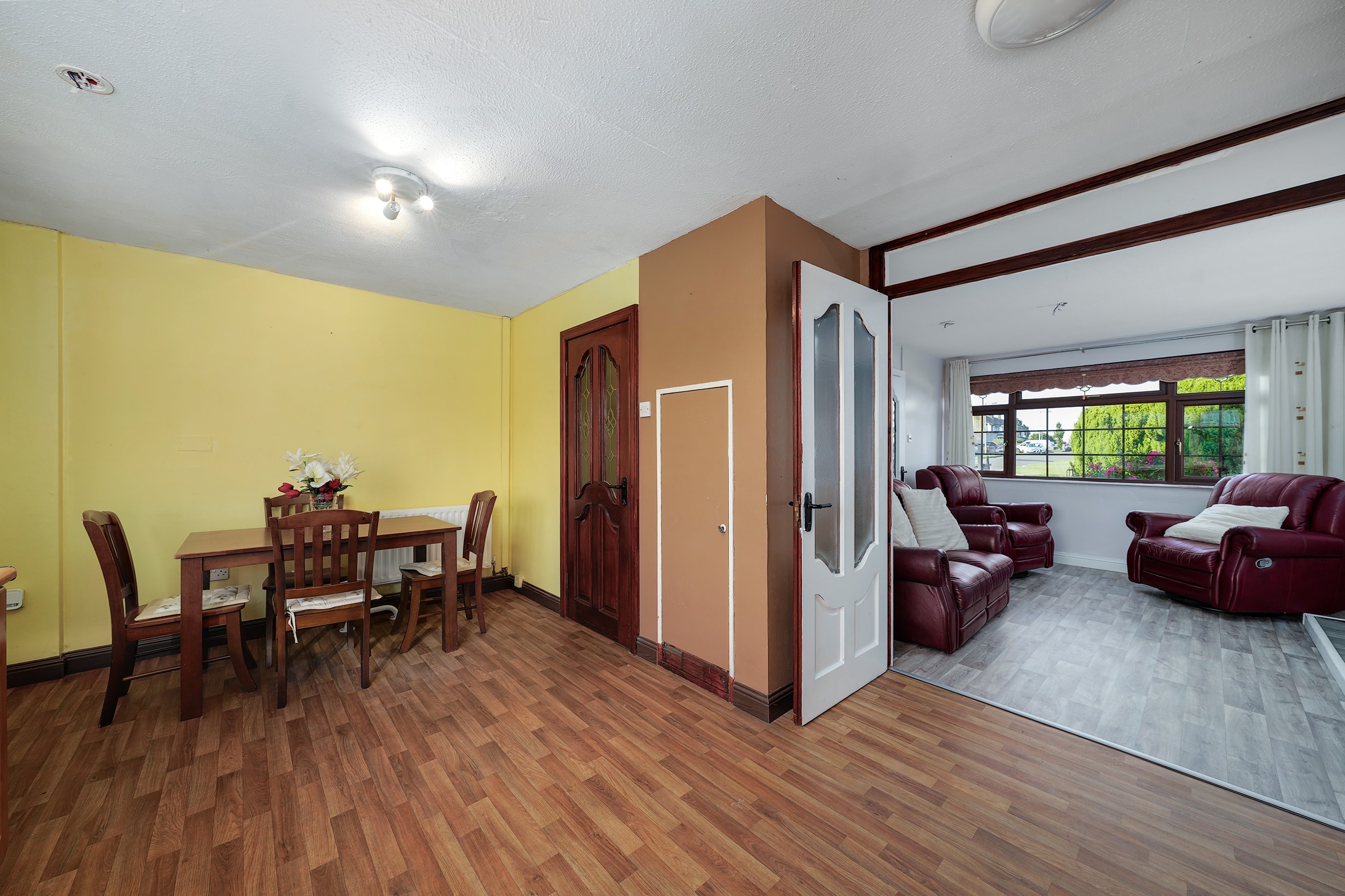 Internally, No. 9 spans c. 85 sqm, and boasts a bright and well-proportioned layout comprising an entrance hallway, spacious front living room, a fully fitted kitchen/dining area to the rear, three generous bedrooms, and two bathrooms. The property has been lovingly maintained over the years and offers excellent scope for modernisation or extension (subject to planning permission).