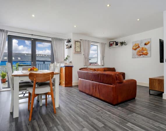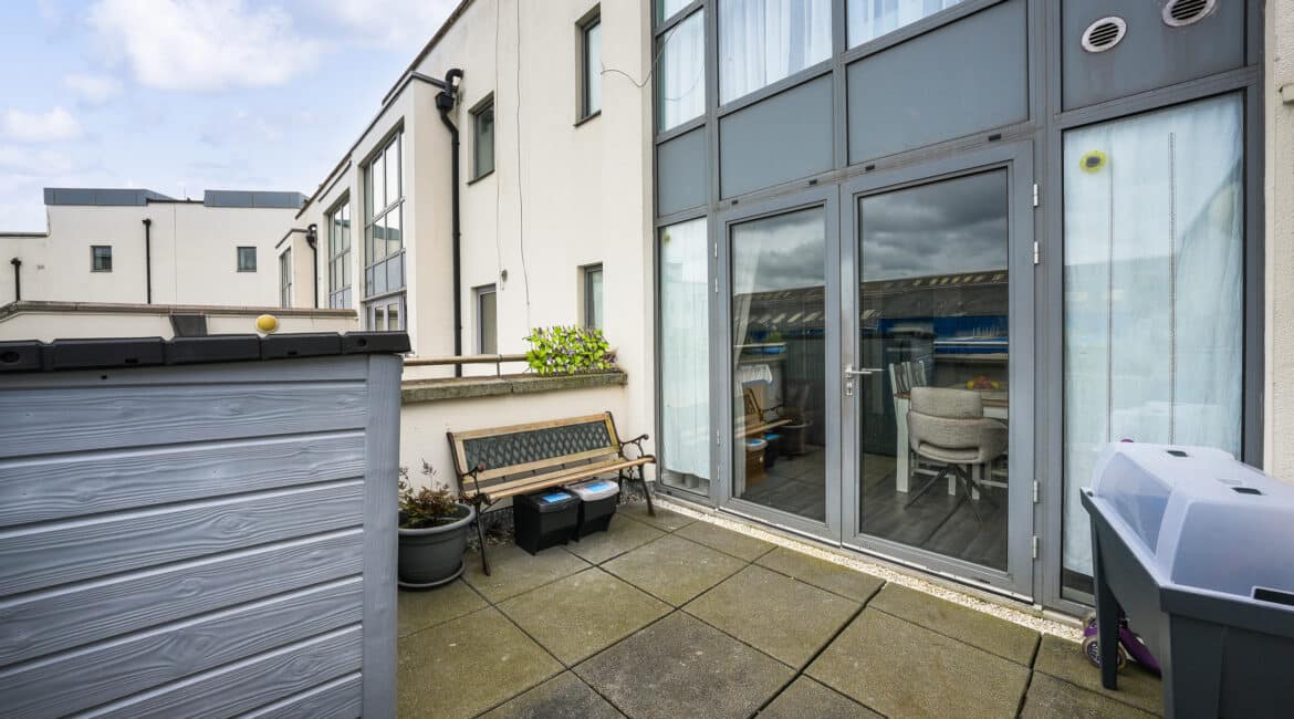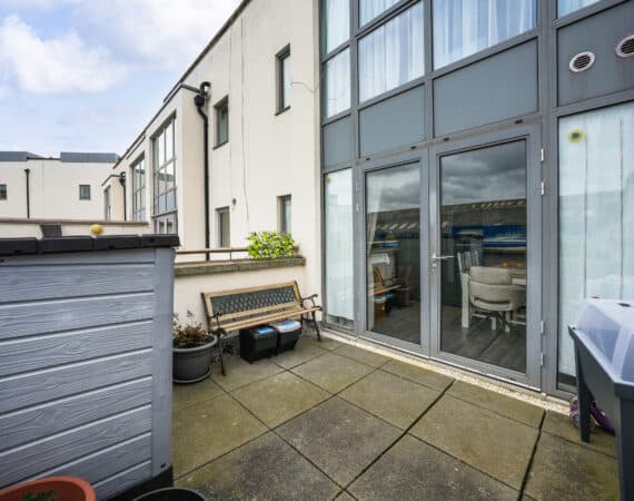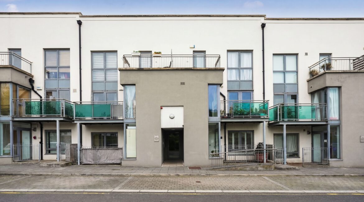 Bright and spacious living accommodation of c. 60 sqm comprises of an entrance hallway, open plan living/kitchen/dining area, 2 double bedrooms with built in wardrobes, master with balcony and a fully tiled modern bathroom. To the rear, there is a private westerly facing rear garden with a storage area. No. 52 boasts two private balconies and a westerly facing rear garden with storage, quality flooring, recently refurbished kitchen, double glazed windows and a designated parking space. An opportunity not to be missed: call Ray Cooke Auctioneers on 086 0469458 or 01 6995050 today for further information or to arrange viewing!!