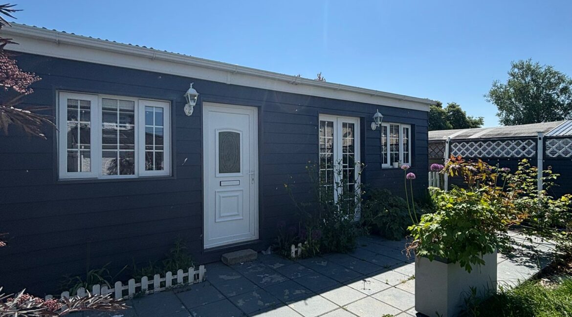 Inside, the home feels bright and spacious, with a living room combined with the kitchen/dining area, and a utility area. There are two bedrooms and one bathroom, offering plenty of space for comfortable living.