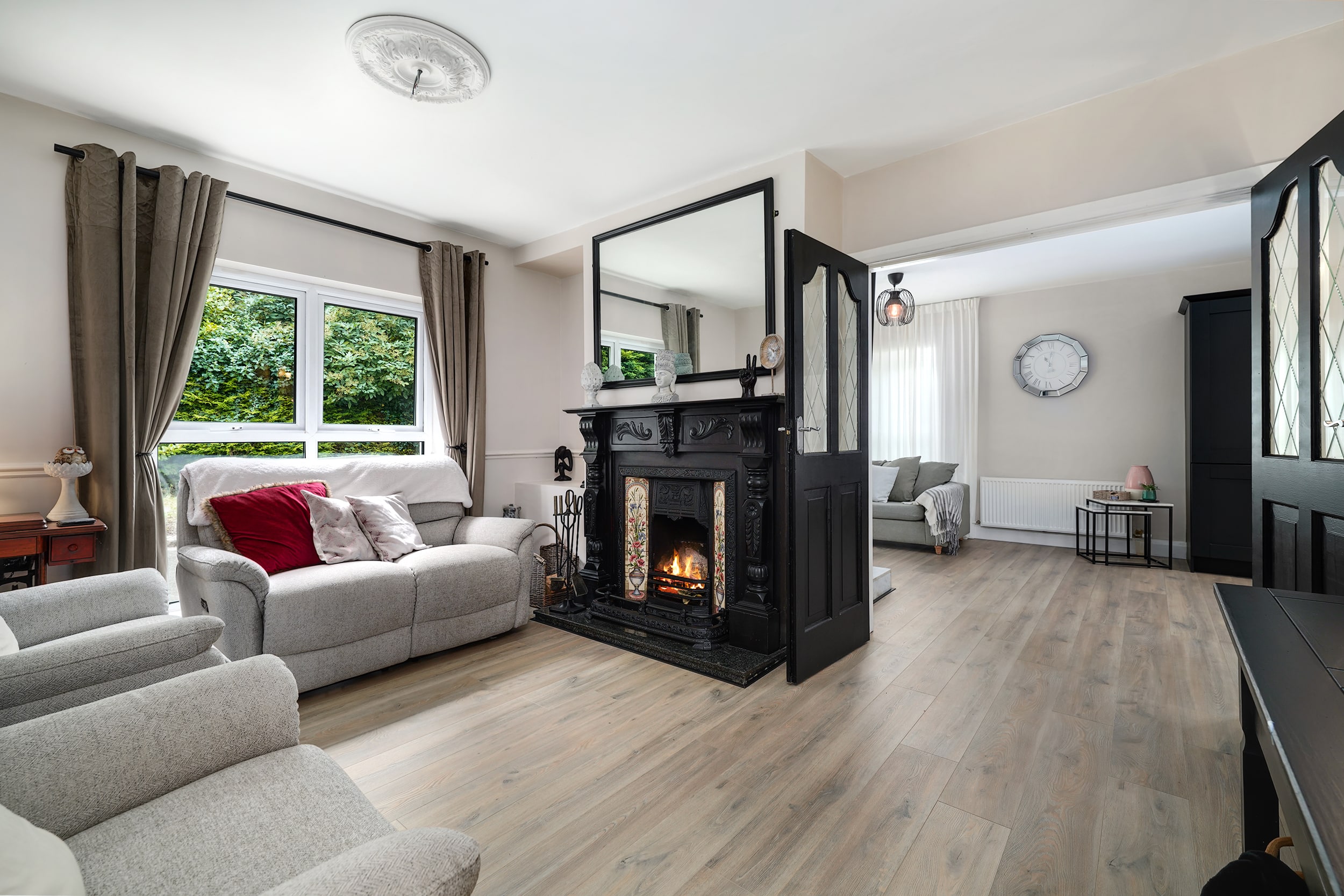 Bright, airy and most elegant living accommodation of C. 182 sqm briefly comprises of entrance hallway with reception area, guest bathroom, living room, large open plan fully fitted kitchen/dining room with separate utility room, four generous bedrooms and main family bathroom with separate bath & shower. On the first floor you are further benefitted with two rooms that can be used for so many different purposes, currently being used as home office and walk in wardrobe. The grounds of this home is superbly maintained and comes with the upmost privacy hidden away behind plenty of beautiful landscaped trees with plenty of natural sunlight around the house making it perfect for relaxing and hosting on them long summer sunny evenings, whilst the front provides ample amounts of parking for a number of cars.