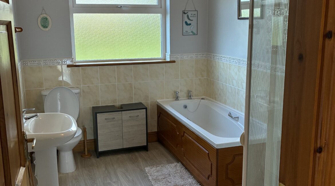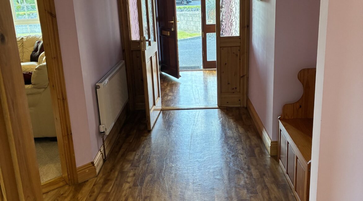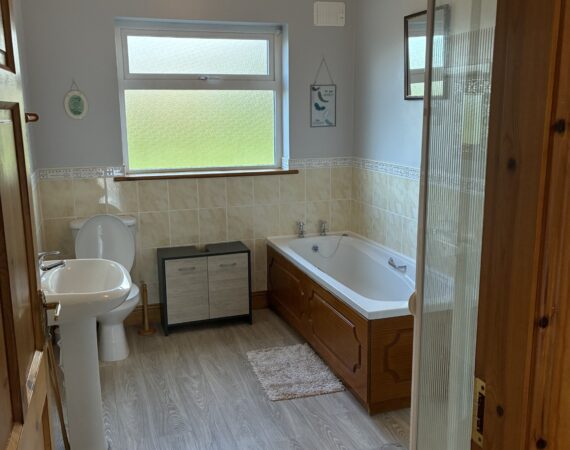 This property comprises of; entrance hallway, an inviting living room with views out onto the front lawn, a bright and large kitchen, separate utility room, master bedroom/ensuite, 2 x single bedrooms and another double room. Main bathroom with bath and separate walk-in shower.