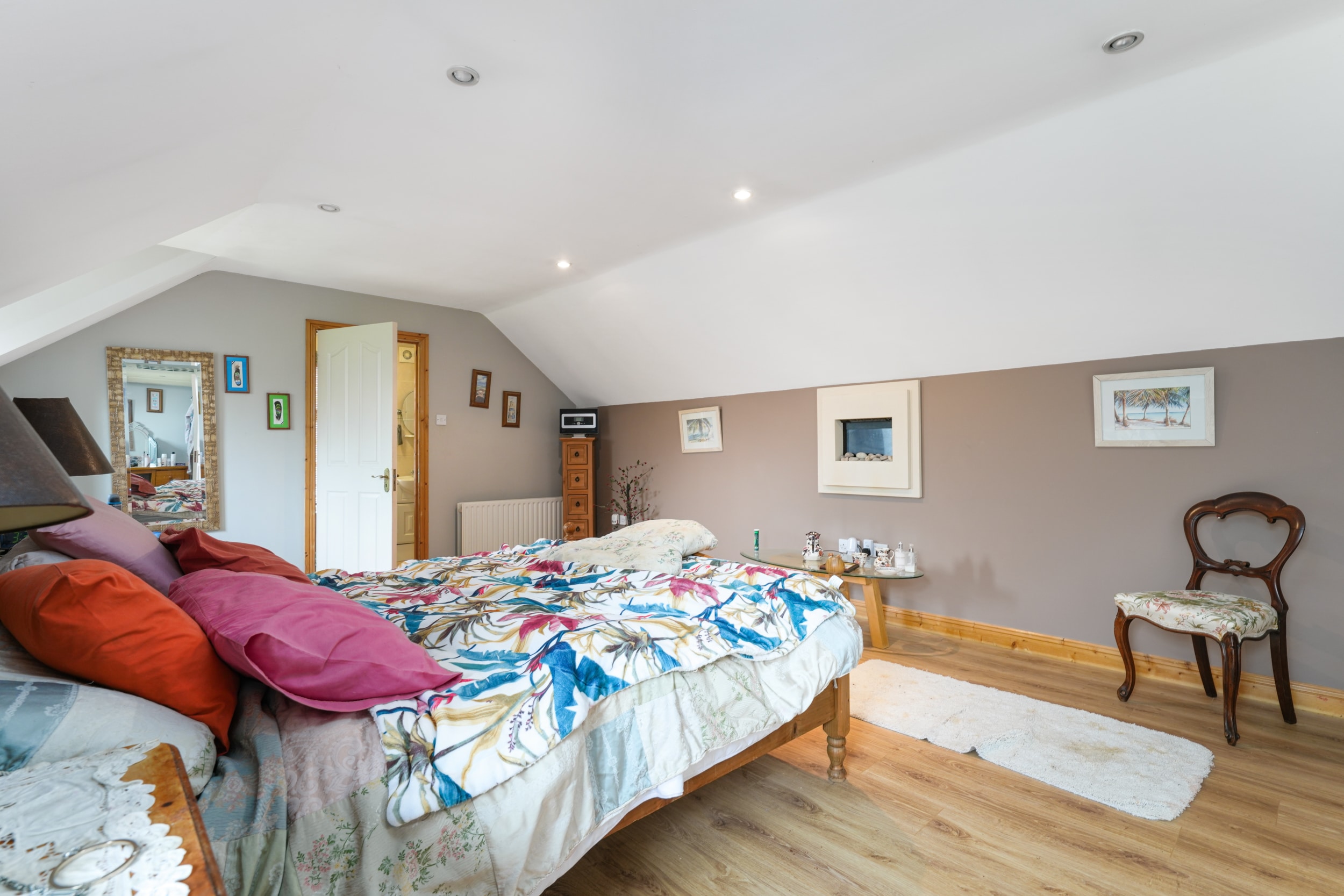 Upstairs boasts two generous sized rooms, currently utilized as a main master bedroom (with an ensuite) and a large walk-in wardrobe.