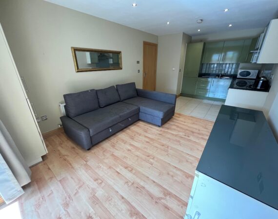 This modern and spacious property comprises of a bright open-plan living space, a fully fitted kitchen, a large private balcony, two double bedrooms, one ensuite, and a main bathroom with both bath and shower. The entire property is fully furnished and tastefully decorated throughout, with elevator access and designated underground parking.