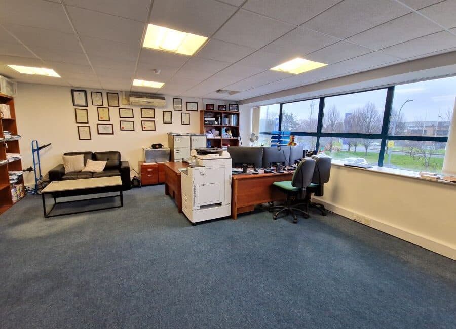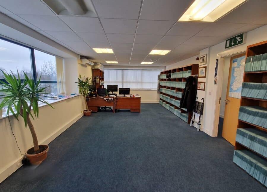 The Office Unit is c. 192 sqm/ 2,066.68 sqft in size and comprises of an entrance hallway, two large open plan offices with tea stations, W.C. facilities x 2 and is fitted out with suspended ceilings, recessed lighting and carpet covered flooring. The unit also benefits from an ideal south-facing aspect to the side of the unit which overlooks the main Business Park entrance thus allowing an abundance of natural light into the premises. The office also has the benefit of 4 designated parking spaces located directly outside the unit.