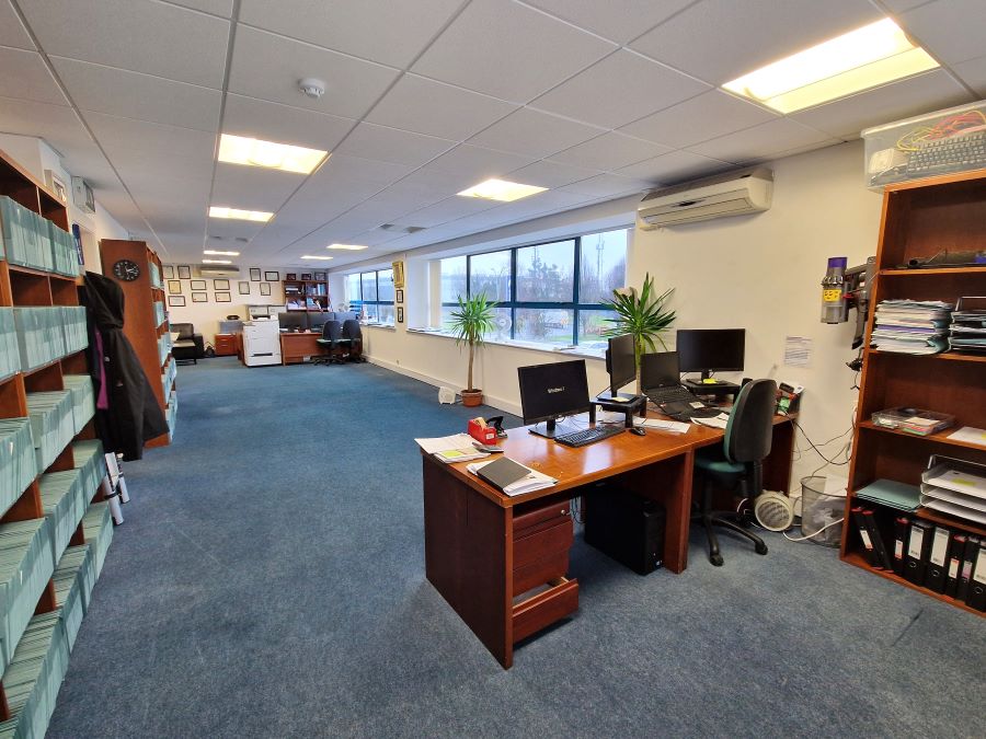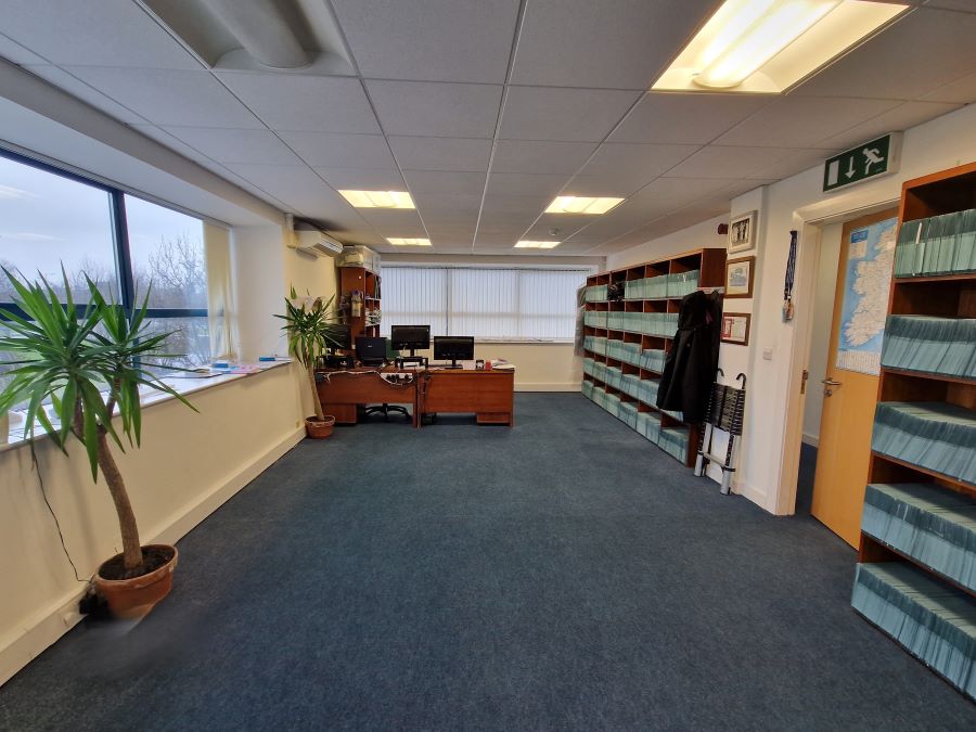 The Office Unit is c. 192 sqm/ 2,066.68 sqft in size and comprises of an entrance hallway, two large open plan offices with tea stations, W.C. facilities x 2 and is fitted out with suspended ceilings, recessed lighting and carpet covered flooring. The unit also benefits from an ideal south-facing aspect to the side of the unit which overlooks the main Business Park entrance thus allowing an abundance of natural light into the premises. The office also has the benefit of 4 designated parking spaces located directly outside the unit.