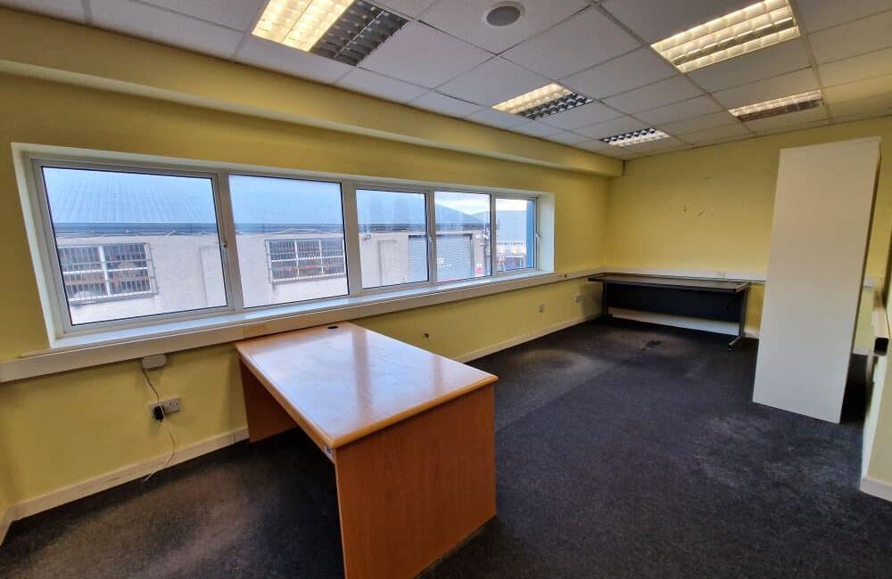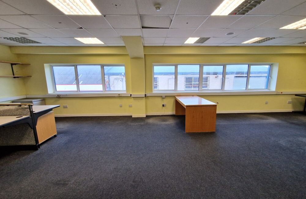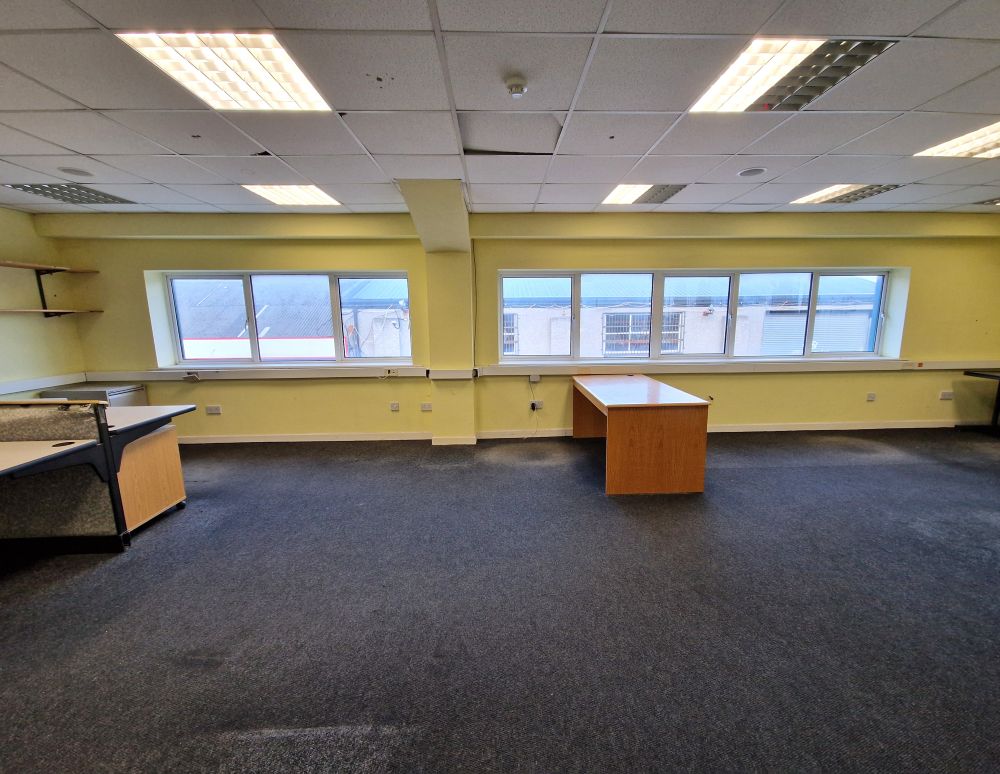 The unit measures a total of c.213 sq. m / 2192sq. ft. and comprises of warehouse space c. 118 sq. m / 1270 sq. ft in size with eves height c. 7 meters, office space and W.C. facilities x 2 on the ground floor. The first floor comprises of a large open plan office.